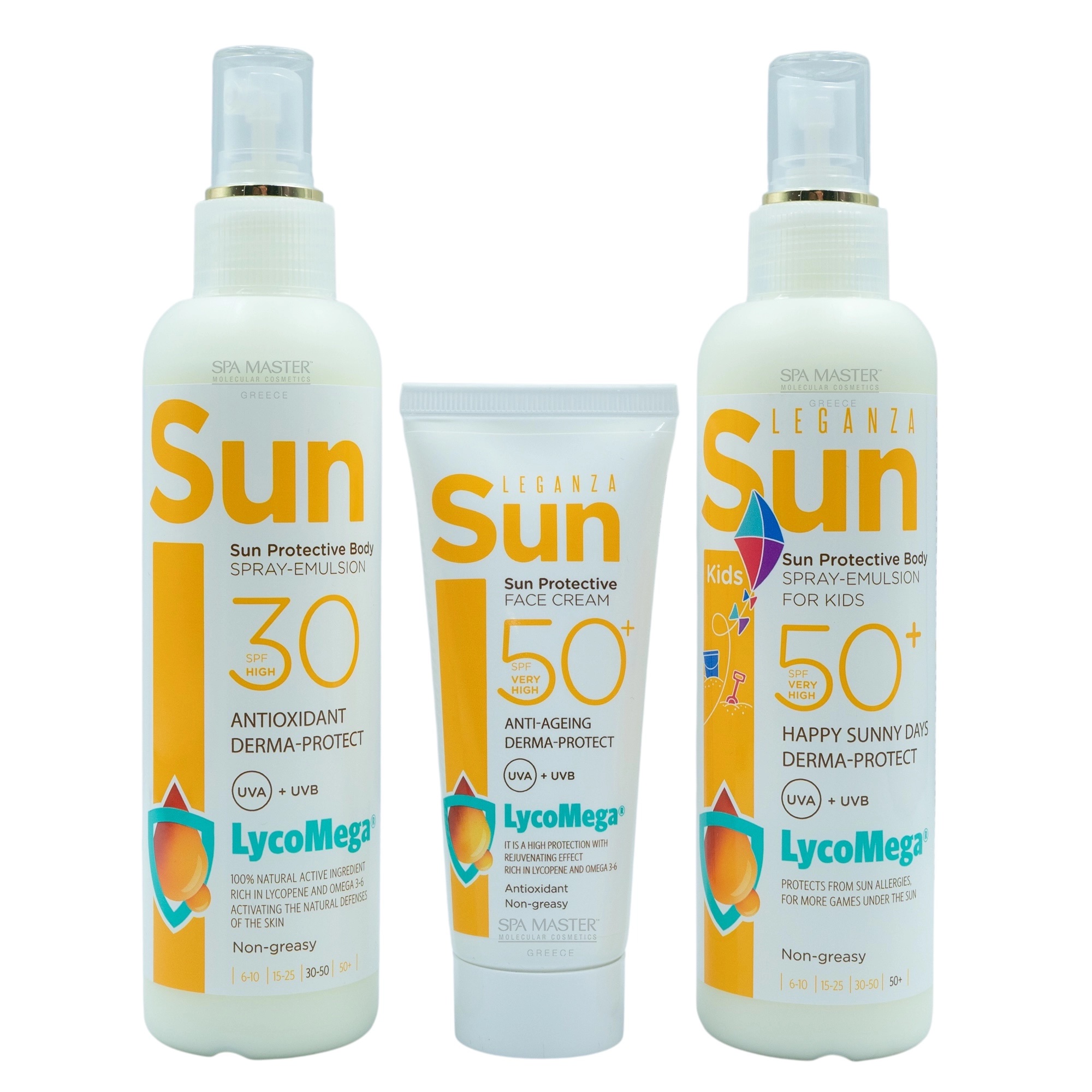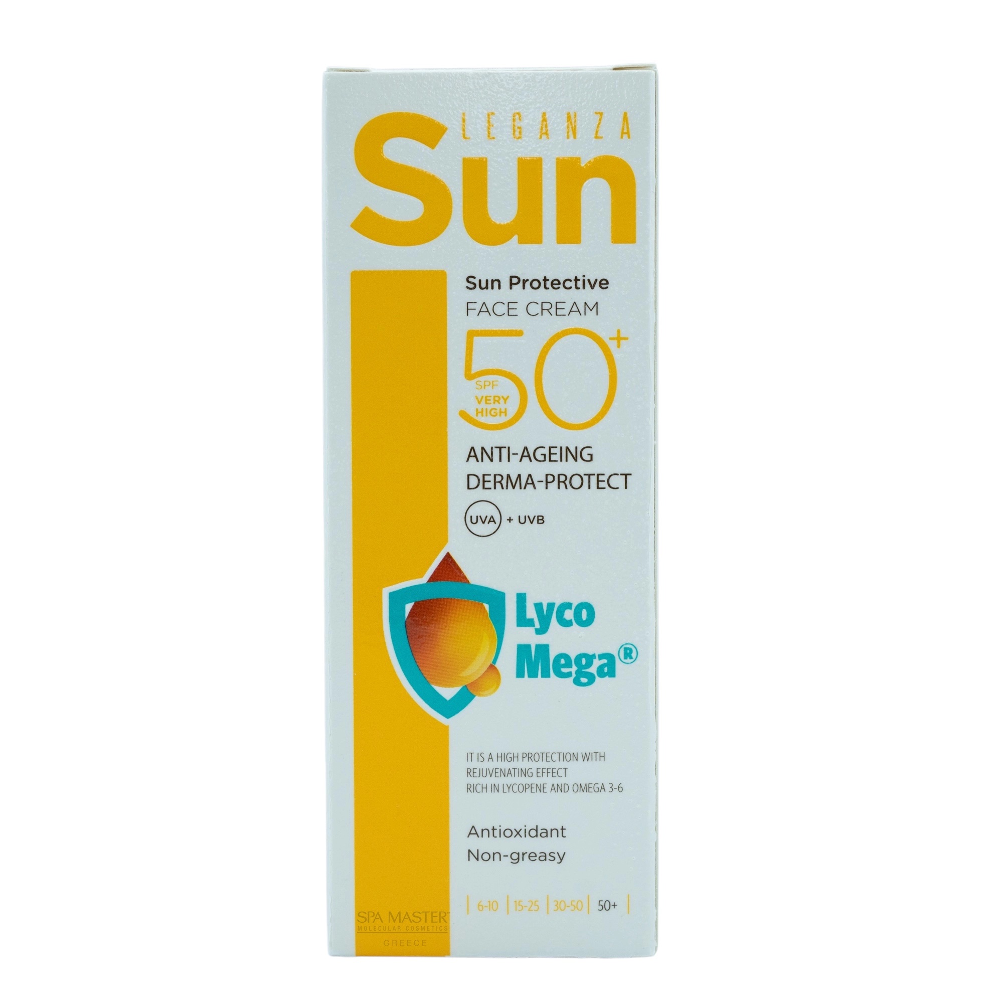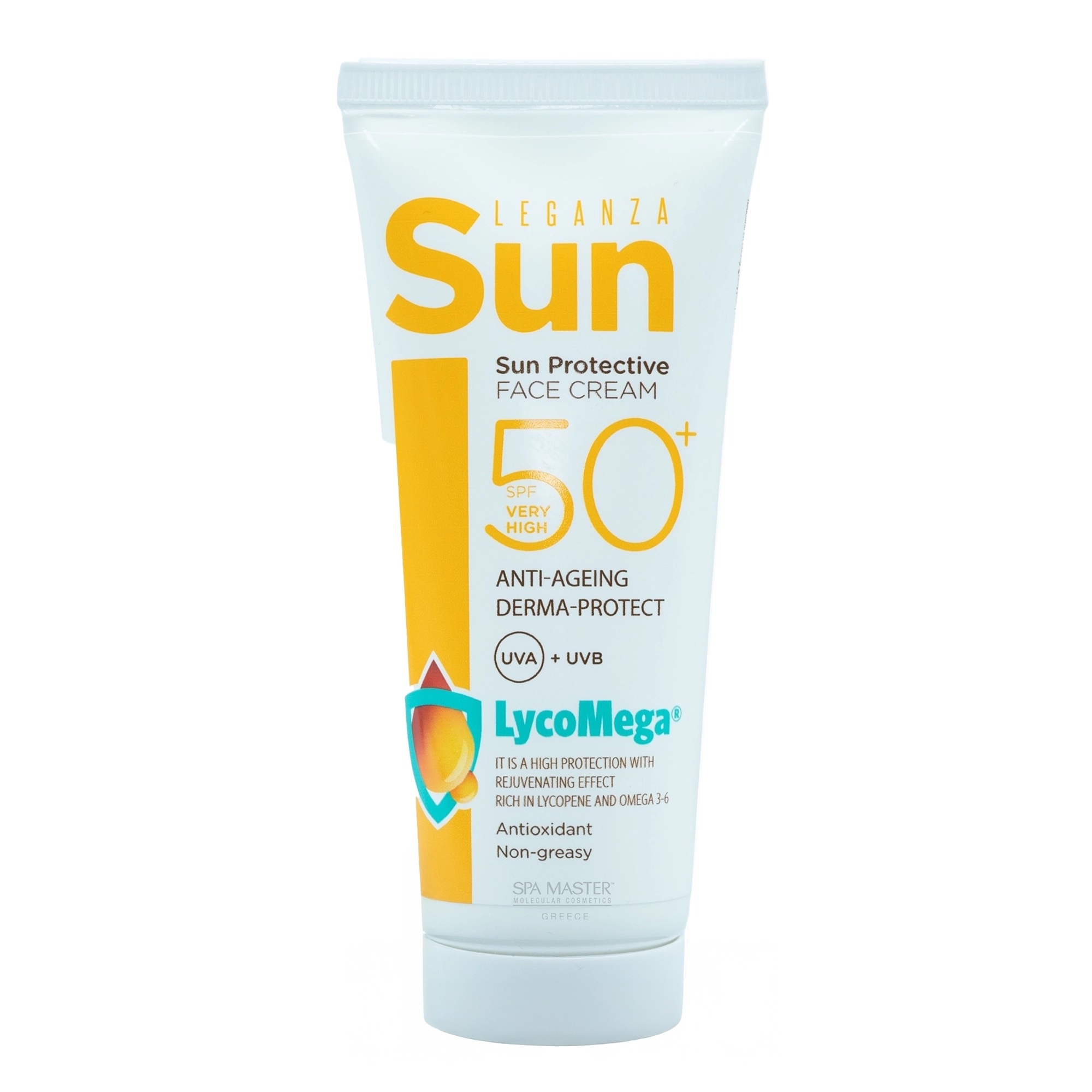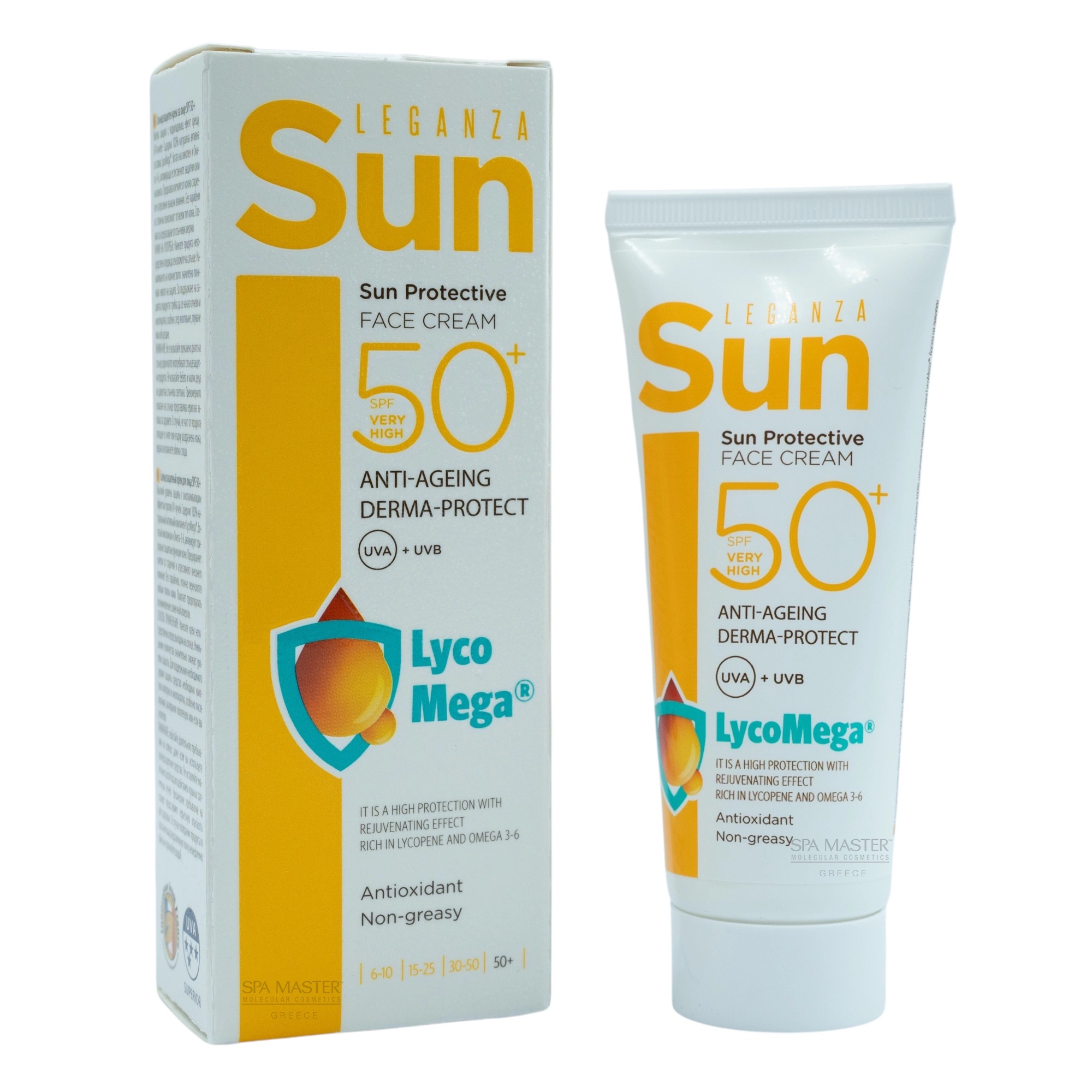 Η Leganza Sun Αντηλιακή Κρέμα Προσώπου SPF 50+ προσφέρει πολύ υψηλή προστασία UVA/UVB, ενώ ταυτόχρονα καταπολεμά τα σημάδια πρόωρης γήρανσης. Εμπλουτισμένη με το 100% φυσικό δραστικό συστατικό LycoMega® – πλούσιο σε λυκοπένιο και Ωμέγα 3-6 – ενισχύει τη φυσική άμυνα της επιδερμίδας και προστατεύει τα κύτταρα από την ηλιακή φθορά.