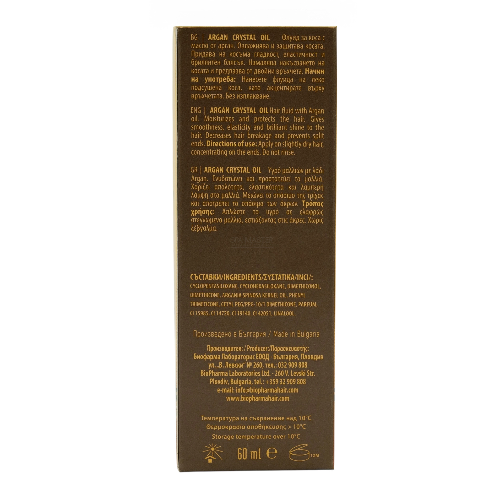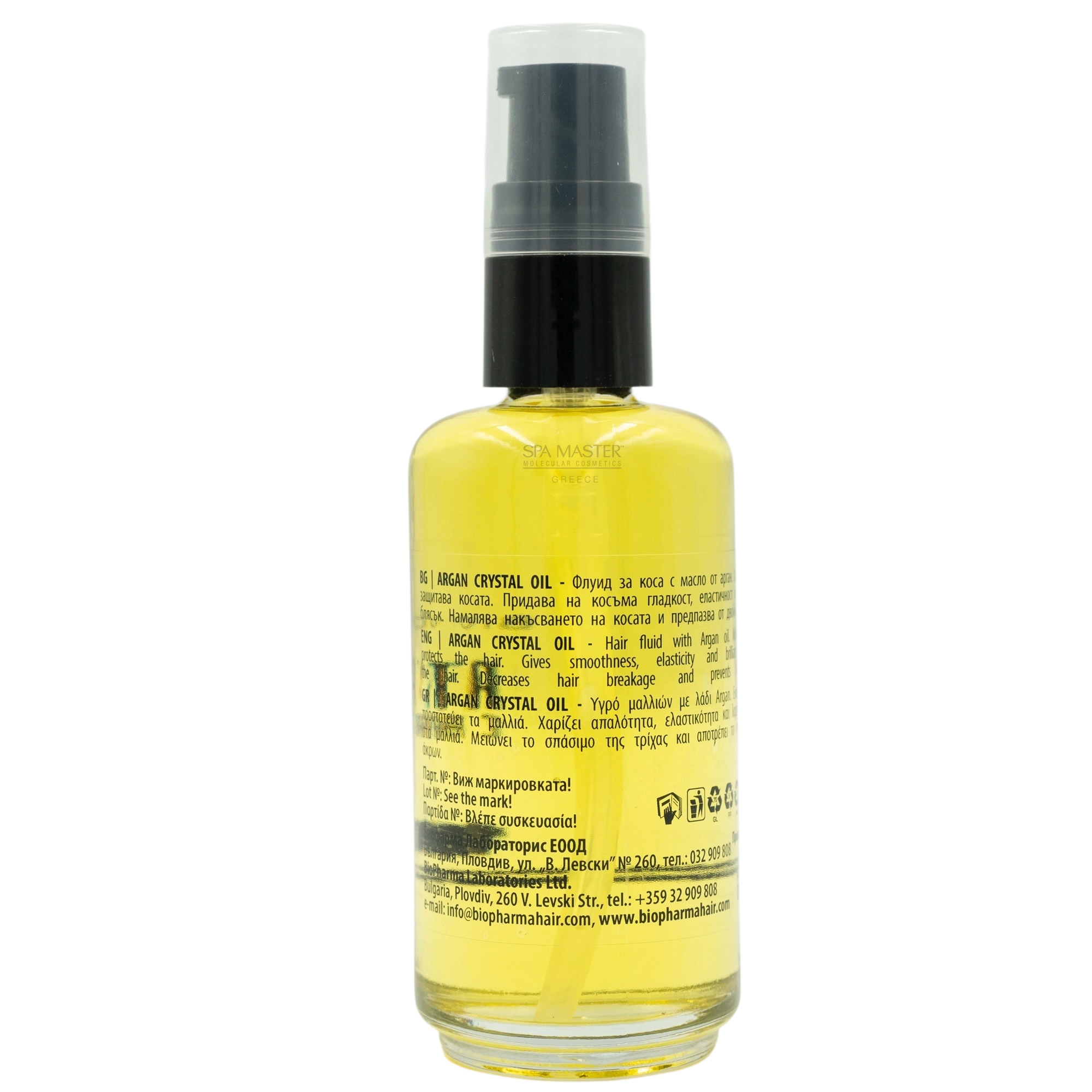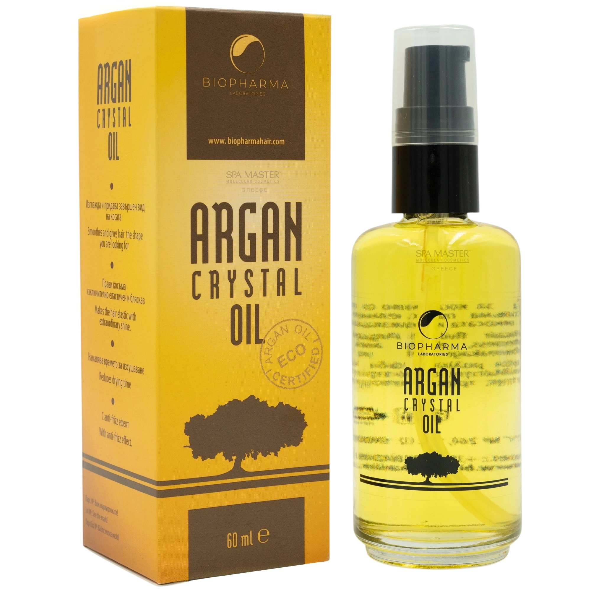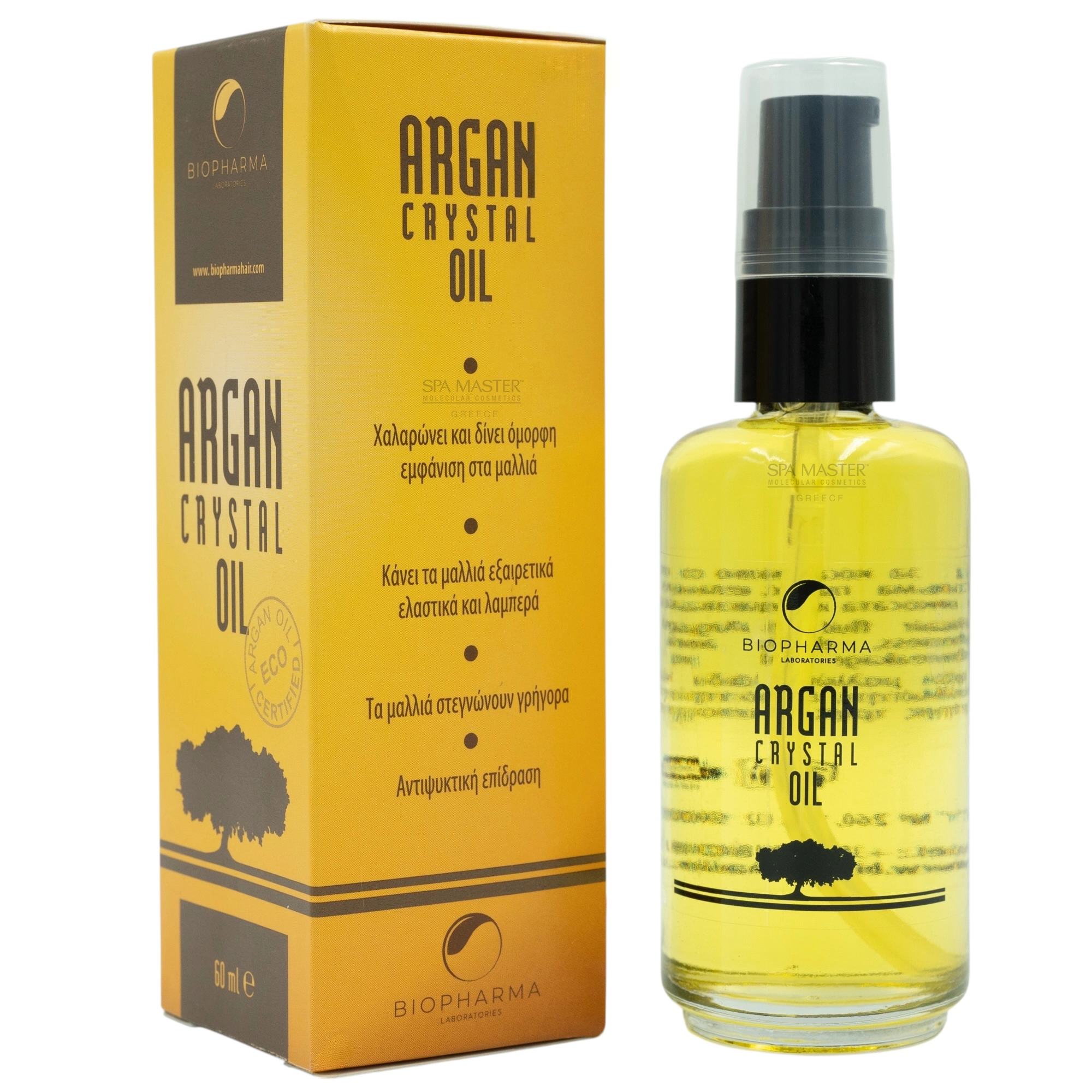 Biopharma Argan Crystal Oil 60ml – Βιολογικό έλαιο argan για εντατική θρέψη, λείανση και επανόρθωση της τρίχας. Χαρίζει φυσική λάμψη χωρίς λιπαρότητα. Ιδανικό για ξηρά, βαμμένα ή ταλαιπωρημένα μαλλιά.