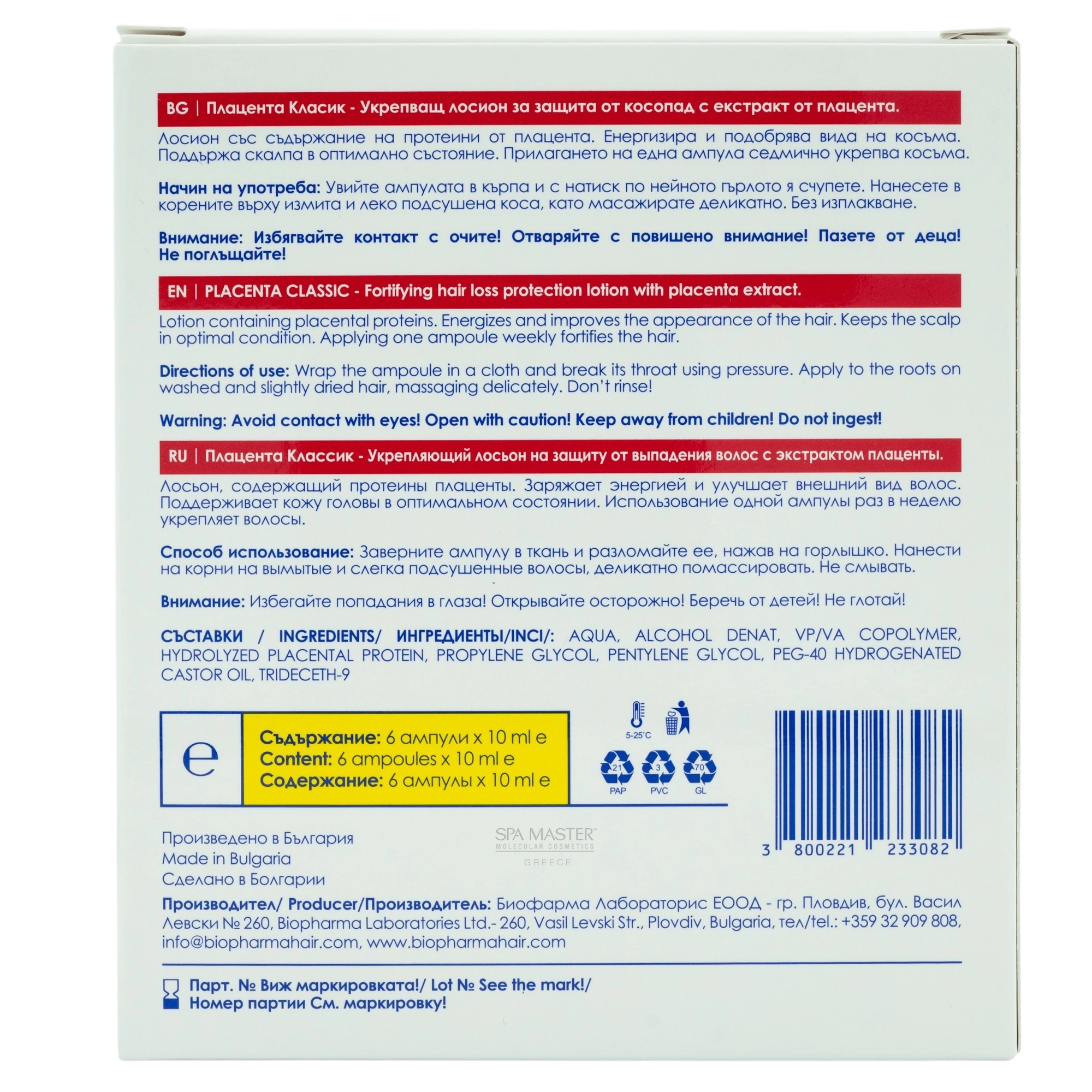 Biopharma Denise Classico Placenta 6x10ml – Λοσιόν με πρωτεΐνη πλακούντα για τριχόπτωση, ενδυνάμωση και αναζωογόνηση του τριχωτού.