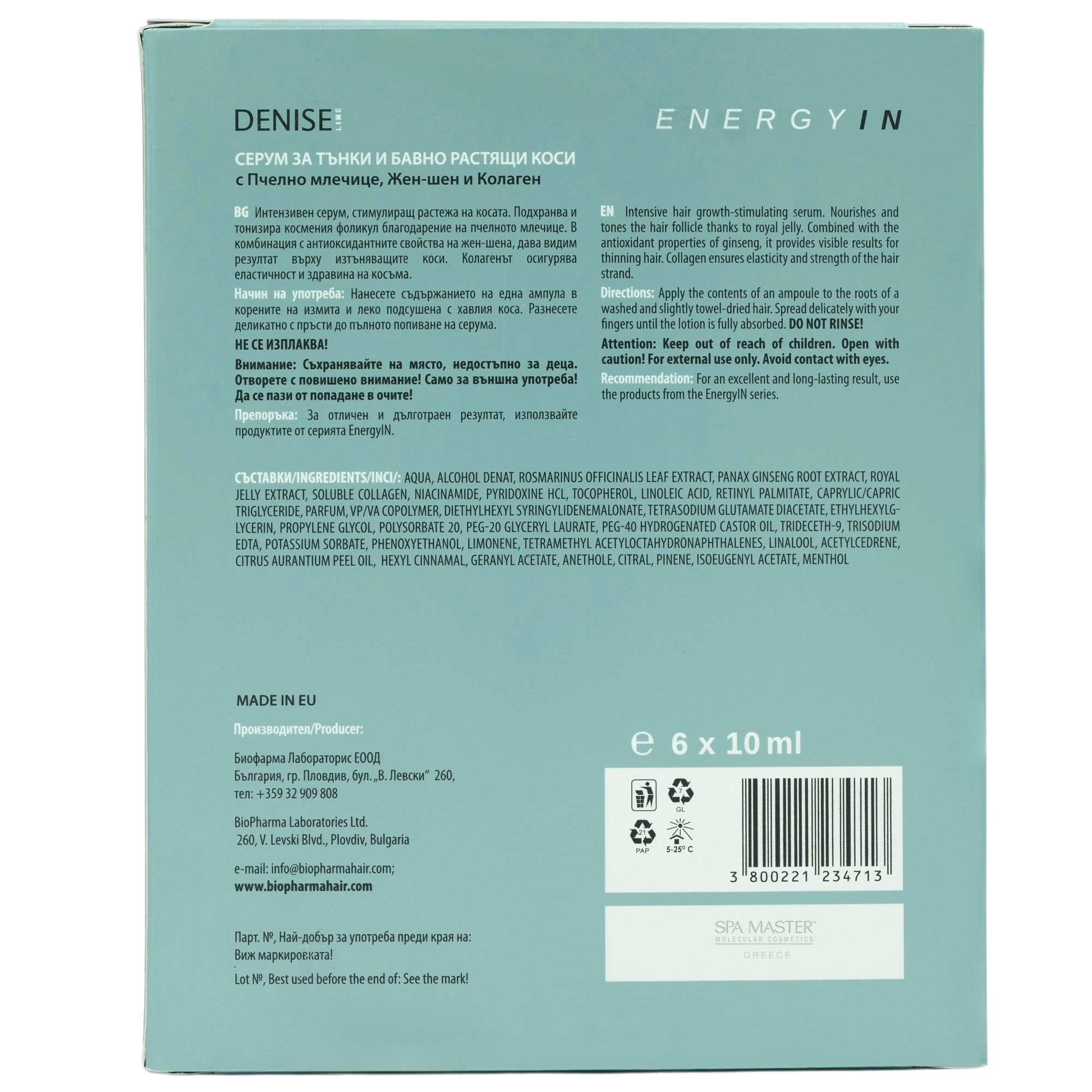 Biopharma Denise EnergyIn Serum 6x10ml | Αμπούλες Τόνωσης για Λεπτά και Αργά Αναπτυσσόμενα Μαλλιά