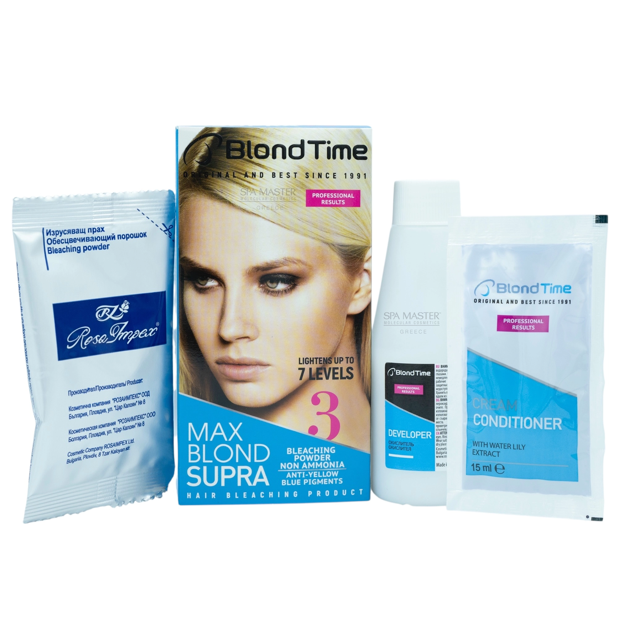Το Blond Time Max Blond είναι το απόλυτο σύστημα ξανοίγματος χωρίς αμμωνία – για ασφαλές αποτέλεσμα, επαγγελματική λάμψη και υπέροχα ξανθά μαλλιά που μαγνητίζουν!