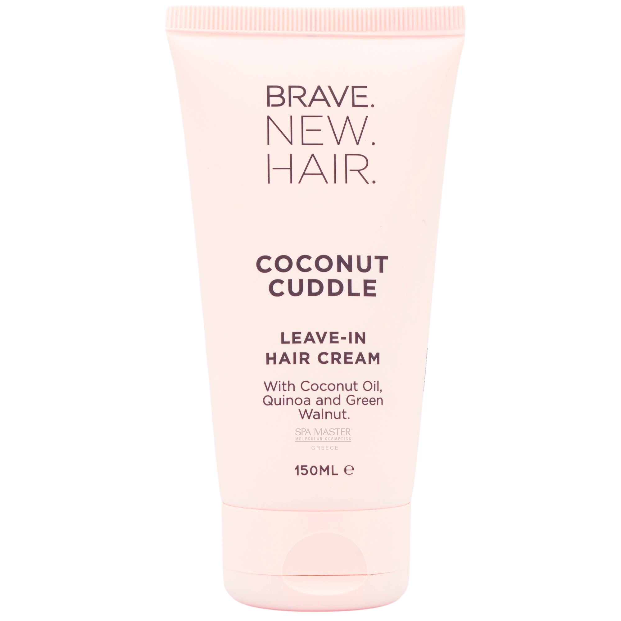 Η Brave New Hair Coconut Cuddle είναι μια leave-in κρέμα μαλλιών με ελαφριά σύνθεση που προσφέρει έντονη ενυδάτωση χωρίς να βαραίνει την τρίχα. Εμπλουτισμένη με λάδι καρύδας, πρωτεΐνη κινόα και πράσινο καρύδι, θρέφει σε βάθος, προστατεύει από την υπεριώδη ακτινοβολία και τη θερμική καταπόνηση, ξεμπερδεύει εύκολα τα μαλλιά και διατηρεί τη λάμψη και τη ζωντάνια τους.