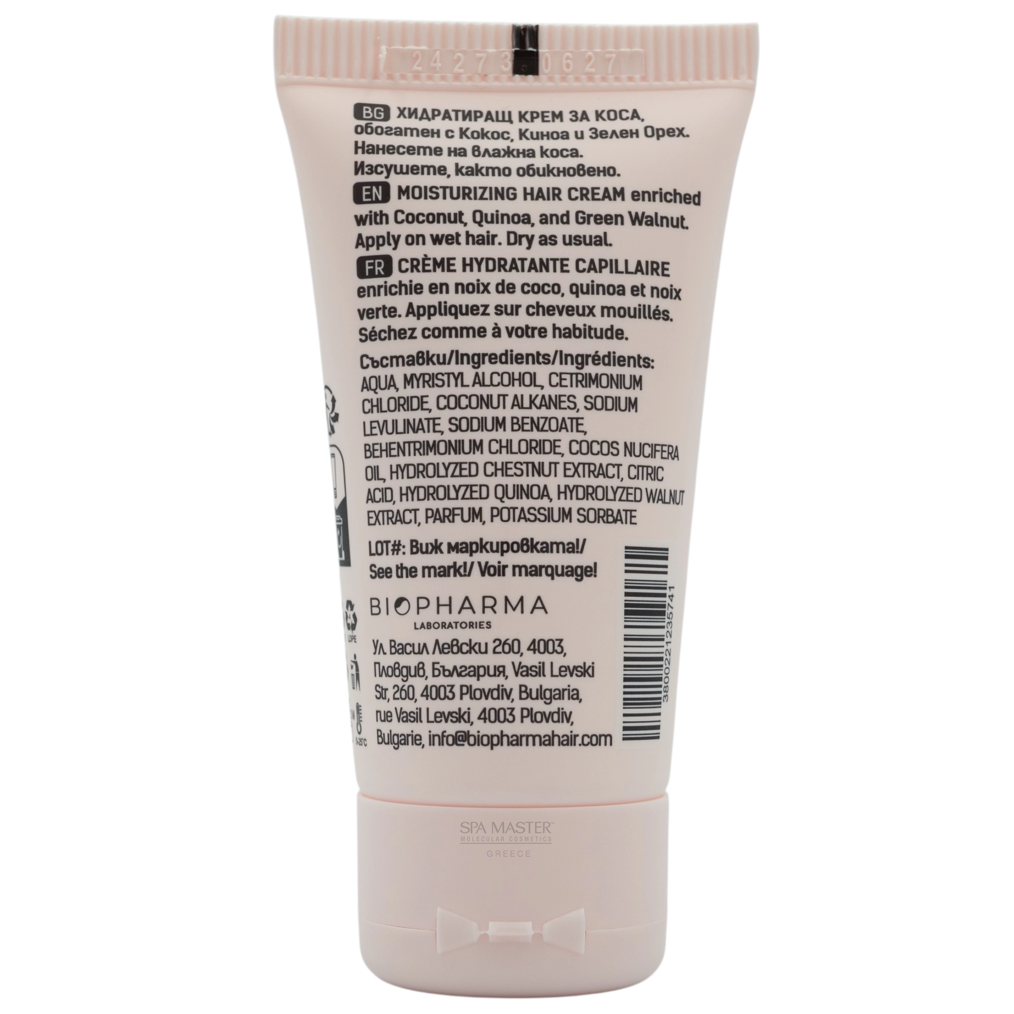 Η Brave New Hair Coconut Cuddle είναι μια leave-in κρέμα μαλλιών με ελαφριά σύνθεση που προσφέρει έντονη ενυδάτωση χωρίς να βαραίνει την τρίχα. Εμπλουτισμένη με λάδι καρύδας, πρωτεΐνη κινόα και πράσινο καρύδι, θρέφει σε βάθος, προστατεύει από την υπεριώδη ακτινοβολία και τη θερμική καταπόνηση, ξεμπερδεύει εύκολα τα μαλλιά και διατηρεί τη λάμψη και τη ζωντάνια τους.