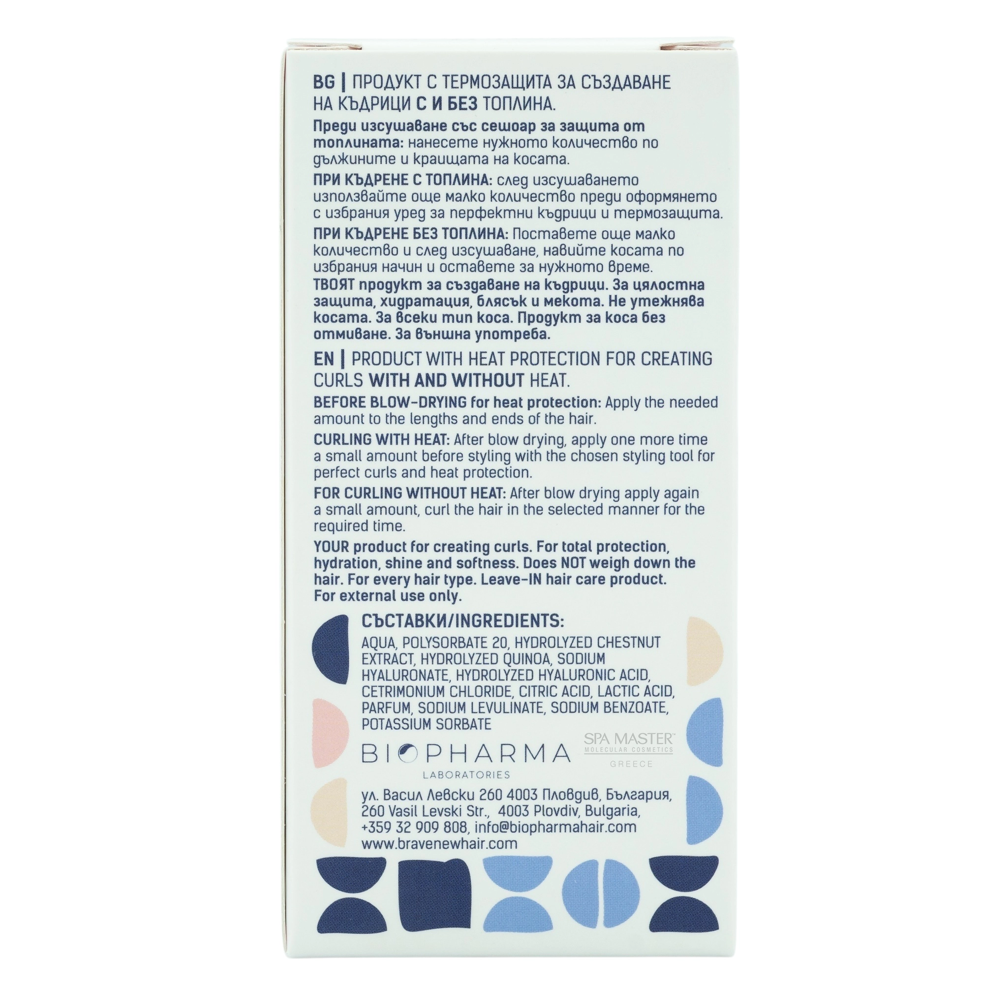 Το Brave New Hair Curl Potion είναι η απόλυτη επιλογή για όσους θέλουν να δημιουργήσουν άψογες, ελαστικές και λαμπερές μπούκλες με ή χωρίς θερμότητα. Εμπλουτισμένο με πρωτεΐνη κινόα, εκχύλισμα κάστανου και διπλό υαλουρονικό οξύ, το προϊόν προσφέρει την ιδανική ισορροπία πρωτεϊνικής ενίσχυσης και ενυδάτωσης, διασφαλίζοντας εντυπωσιακό αποτέλεσμα χωρίς φθορά. Η λεπτή μεμβράνη που σχηματίζεται γύρω από την τρίχα προσφέρει προστασία από θερμότητα έως 220°C, UV φίλτρα, αλλά και έλεγχο φριζαρίσματος, ενώ ενδείκνυται για κάθε τύπο μαλλιών.