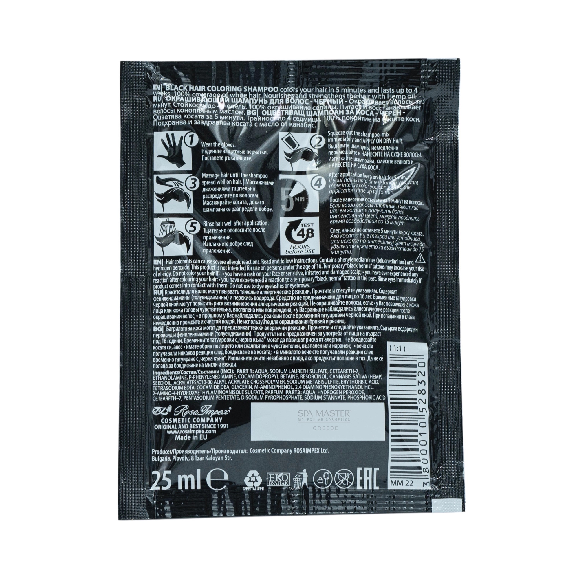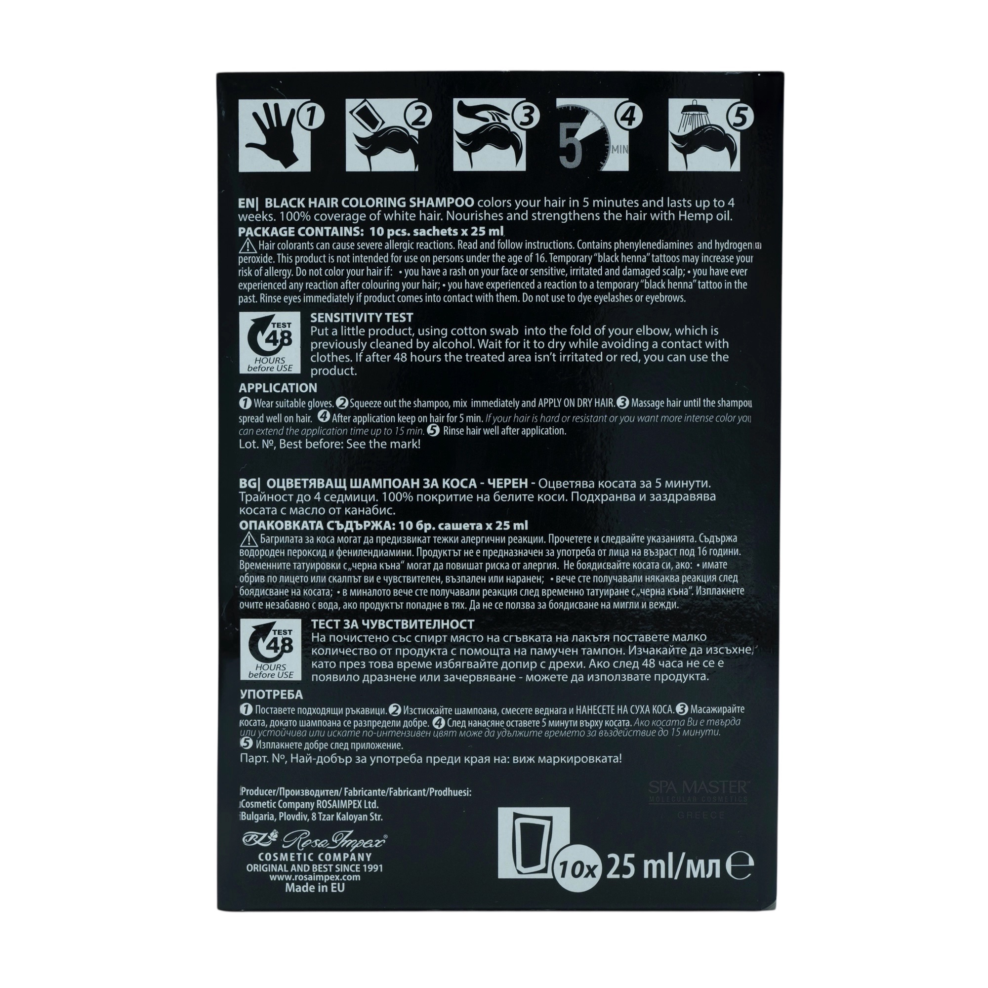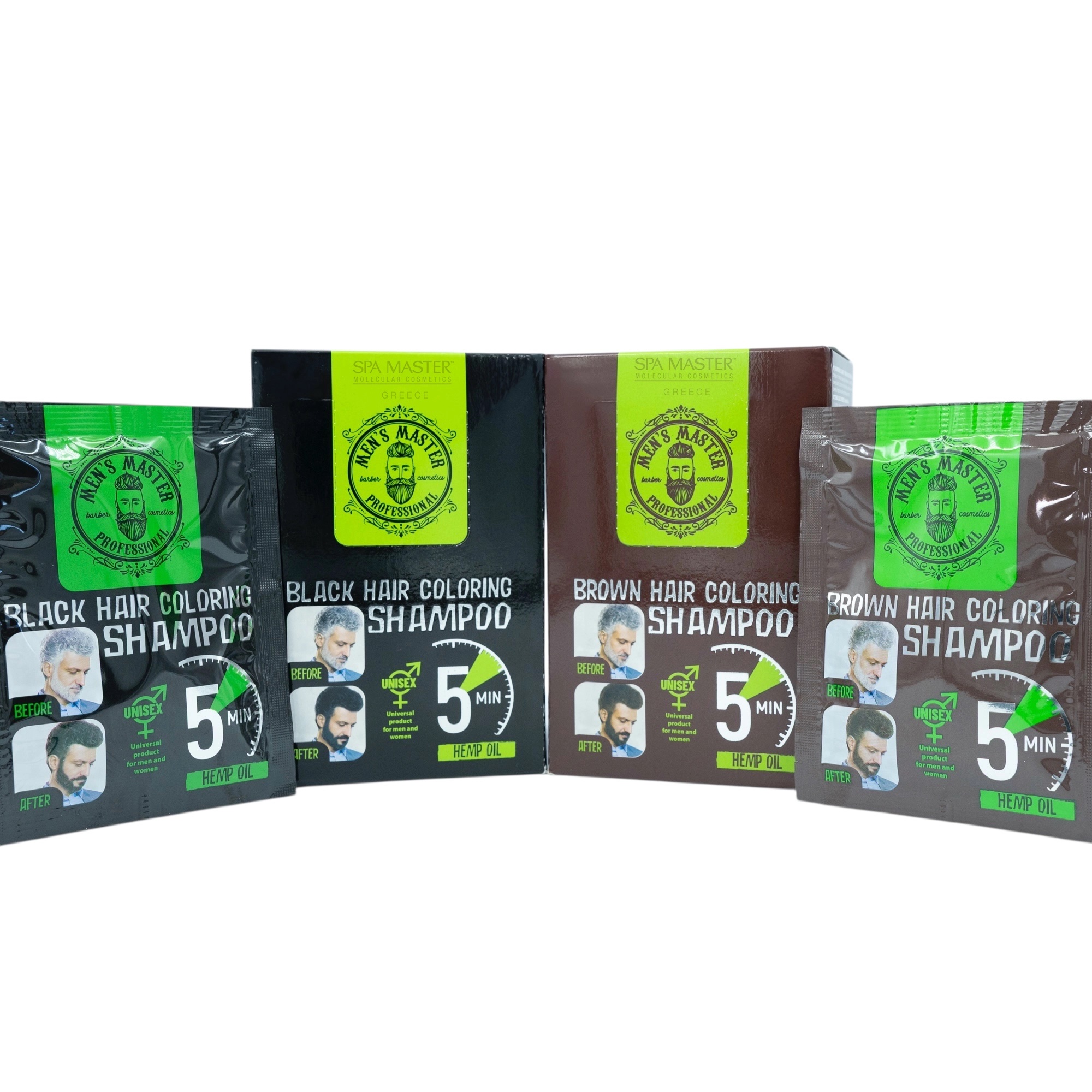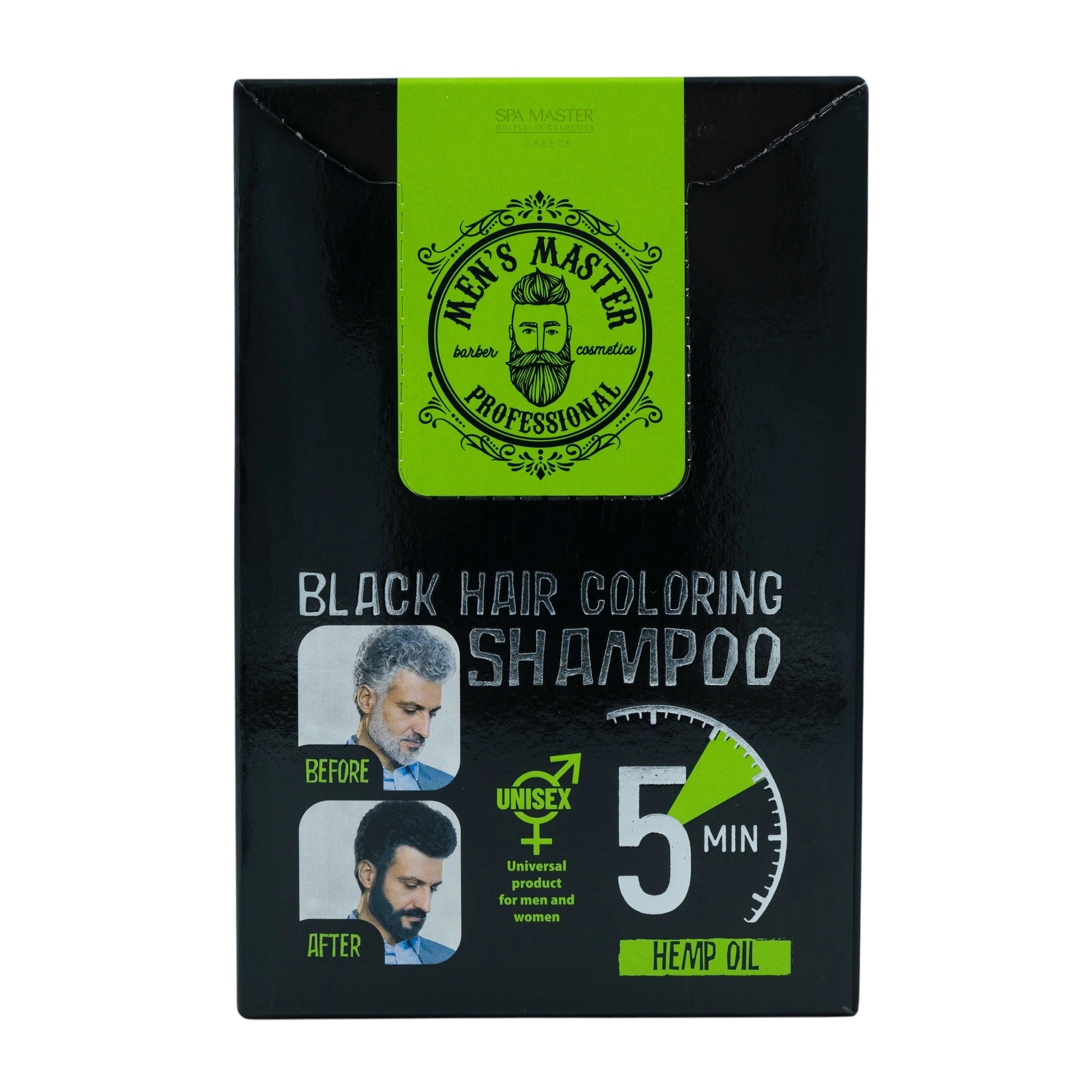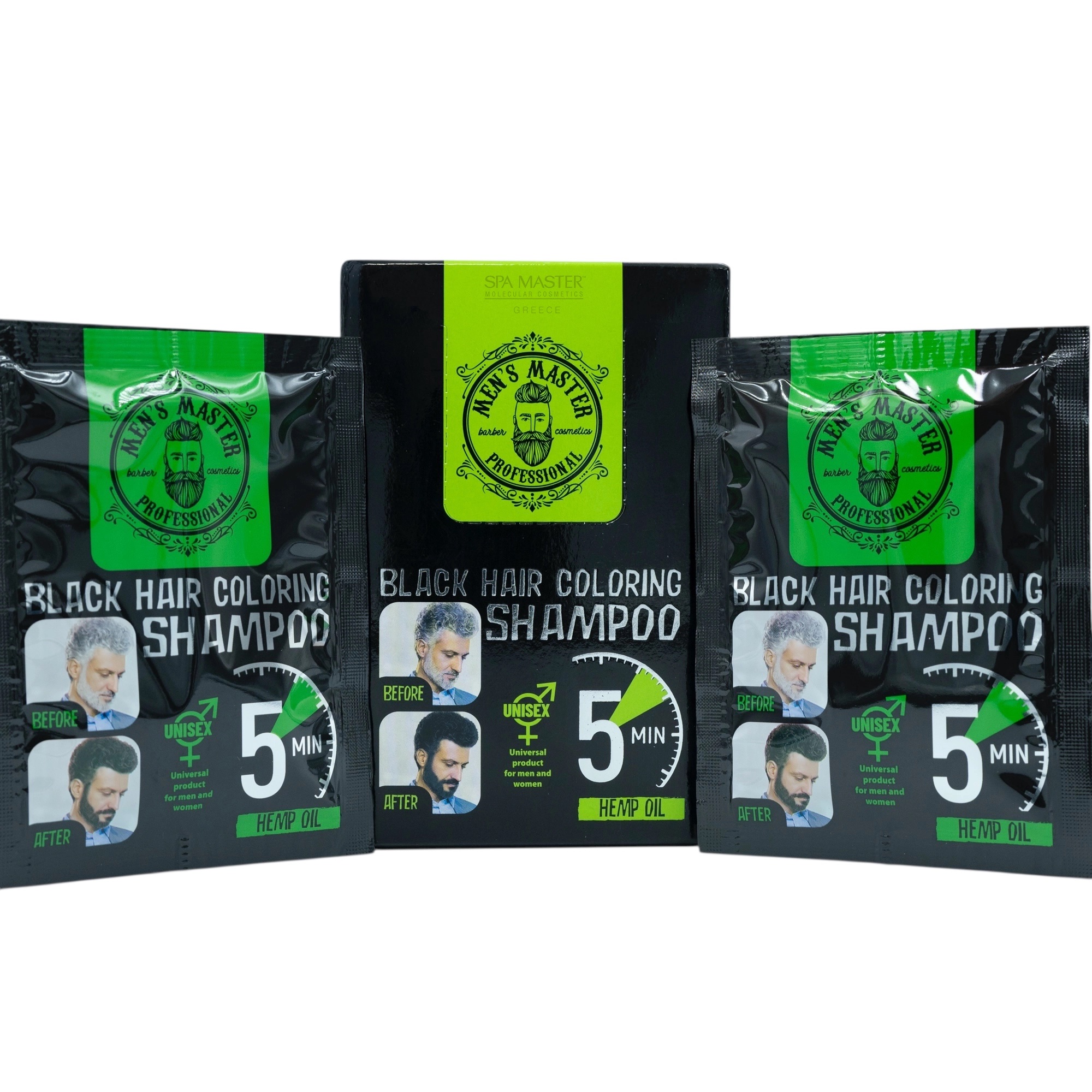 MEN’S MASTER Black Hair Coloring Shampoo 25ml – Σαμπουάν βαφής για άνδρες με μαύρη απόχρωση. Καλύπτει άμεσα τα λευκά μαλλιά με φυσικό αποτέλεσμα.
