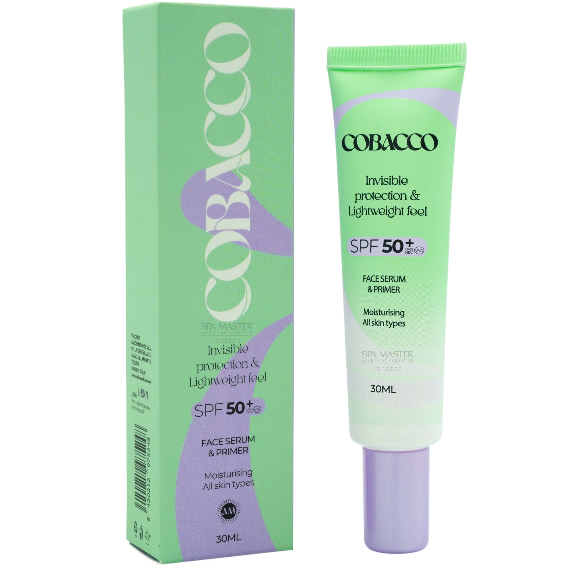 Cobacco Invisible Face Serum SPF50+ 30ml – Πολύ Υψηλή Προστασία, Βαθιά Ενυδάτωση & Άψογη Βάση Μακιγιάζ