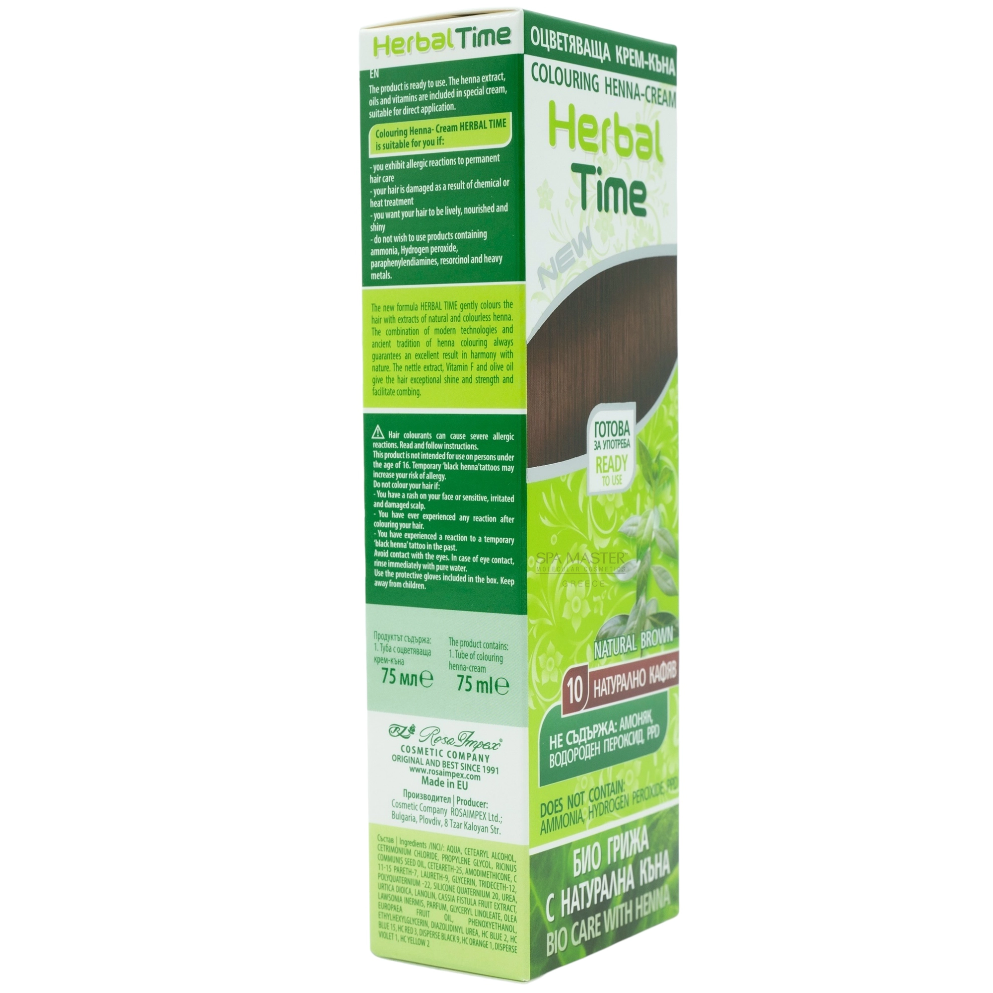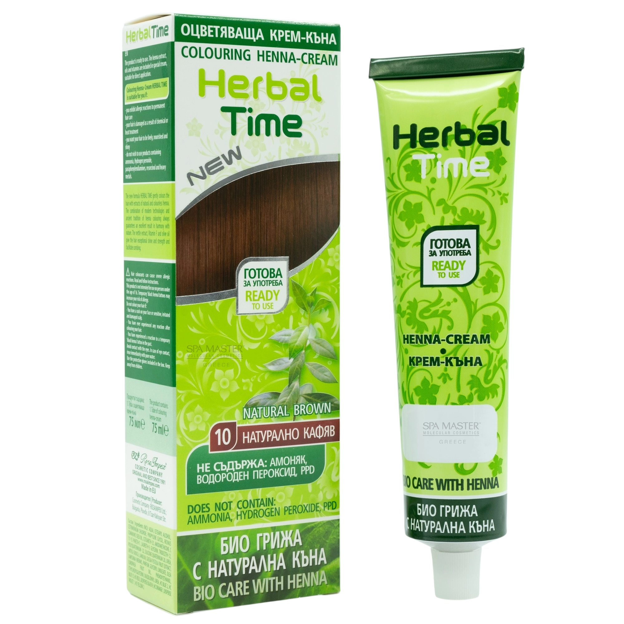 Η Herbal Time Έτοιμη Χέννα Μαλλιών Φυσικό Καστανό (Natural Brown N10) είναι μια φυσική κρέμα–χέννα σε σωληνάριο 75ml, έτοιμη για άμεση εφαρμογή χωρίς μίξεις και αναμονές.