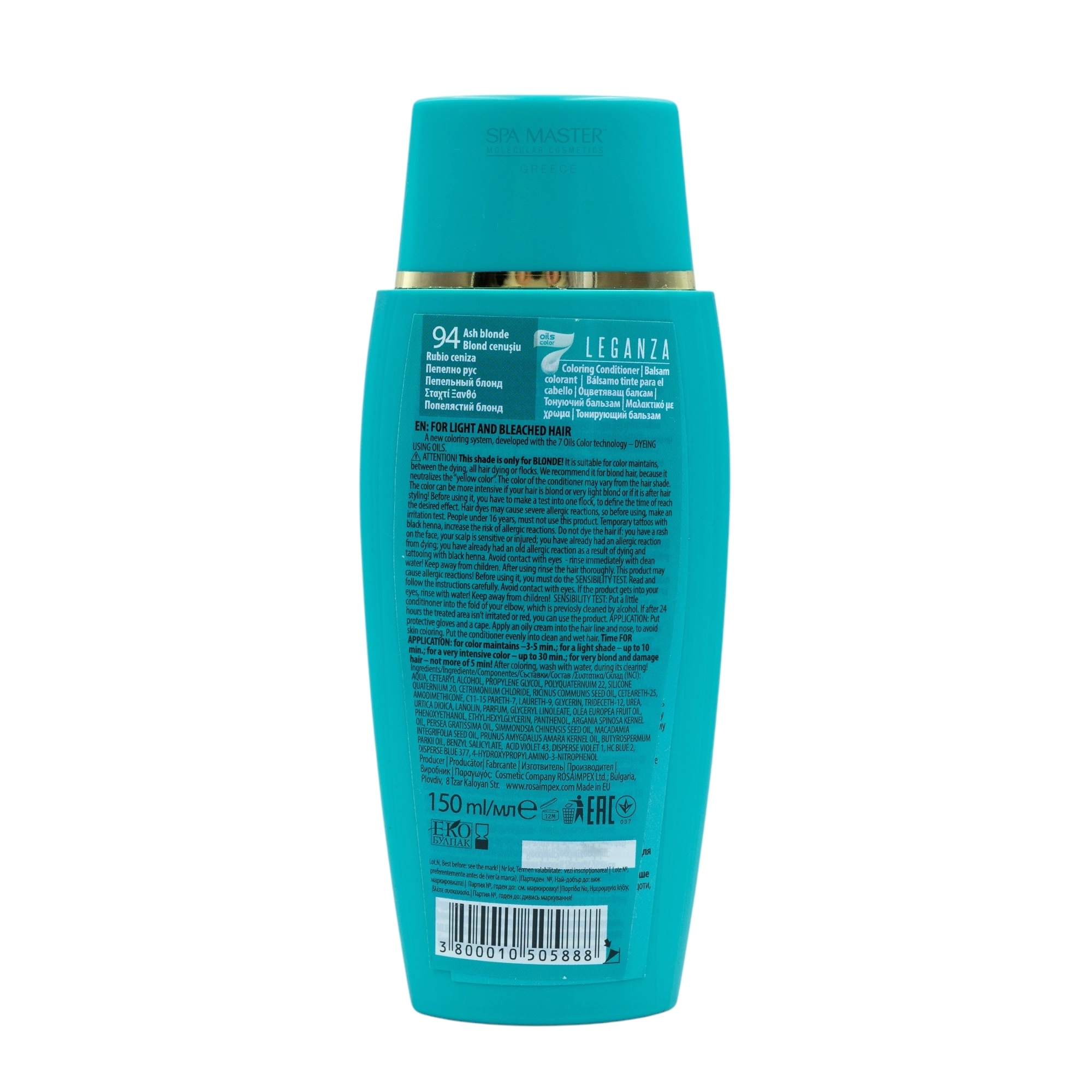 Leganza Coloring Conditioner – Μαλακτική Κρέμα Μαλλιών με Χρώμα Χωρίς Αμμωνία 150ml (No94 Ash Blonde – Ξανθό Σταχτί)