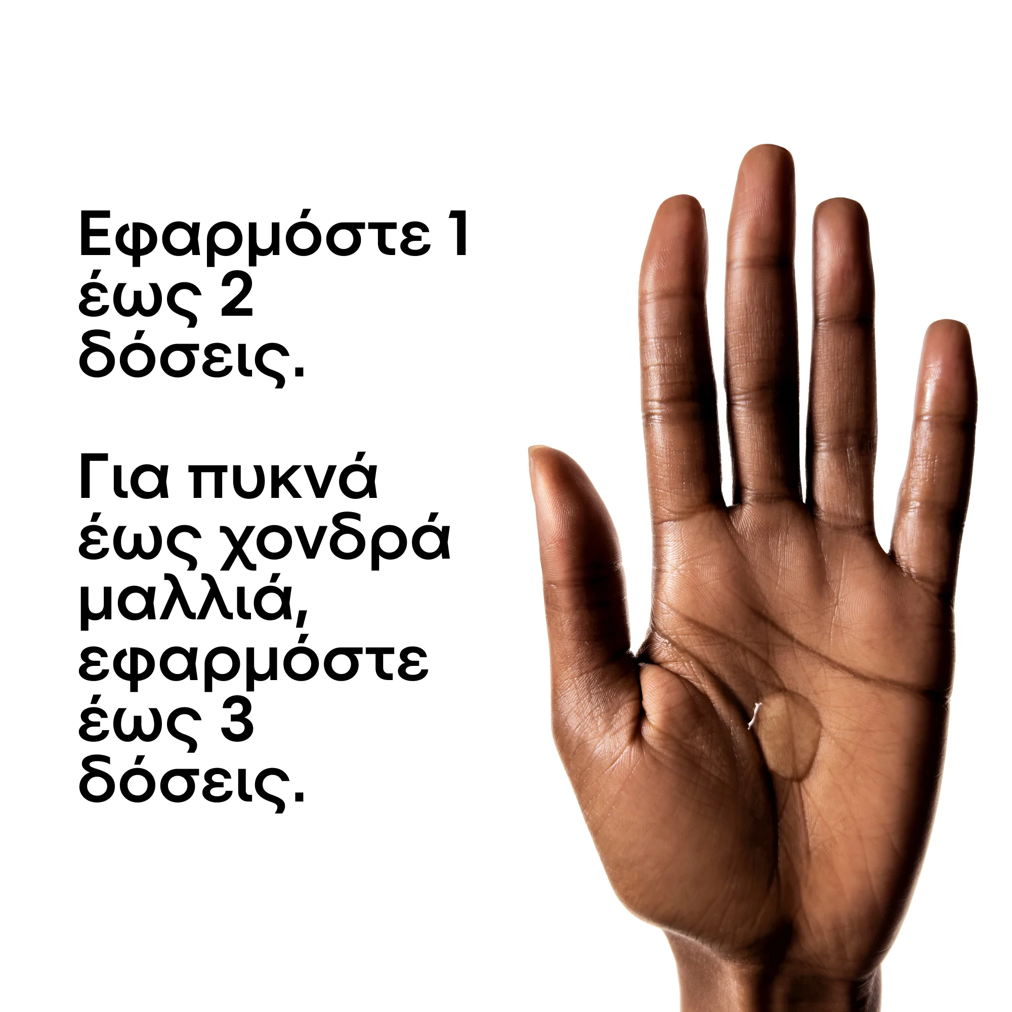 Εφαρμόστε 1–2 σταγόνες σε νωπά ή στεγνά μαλλιά.