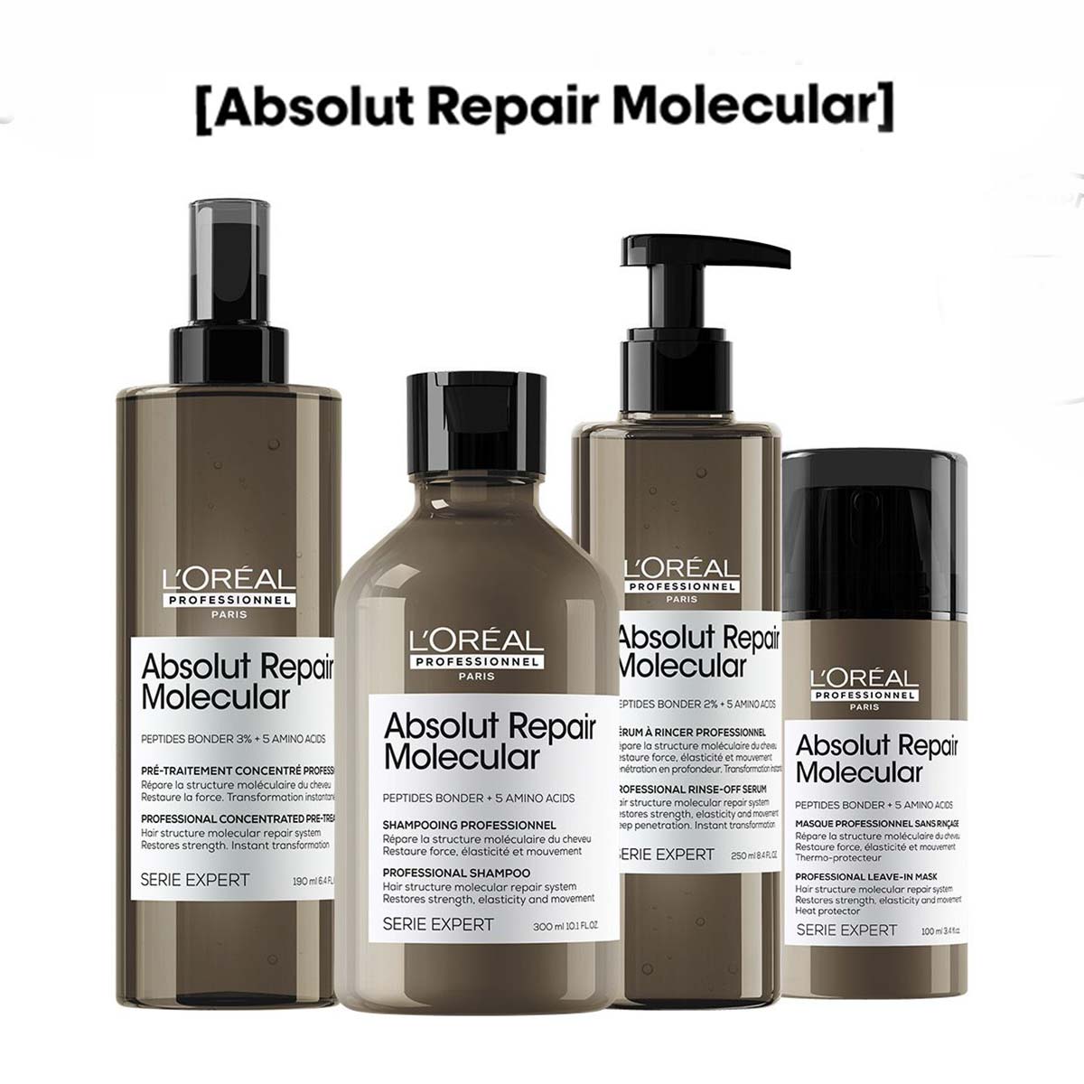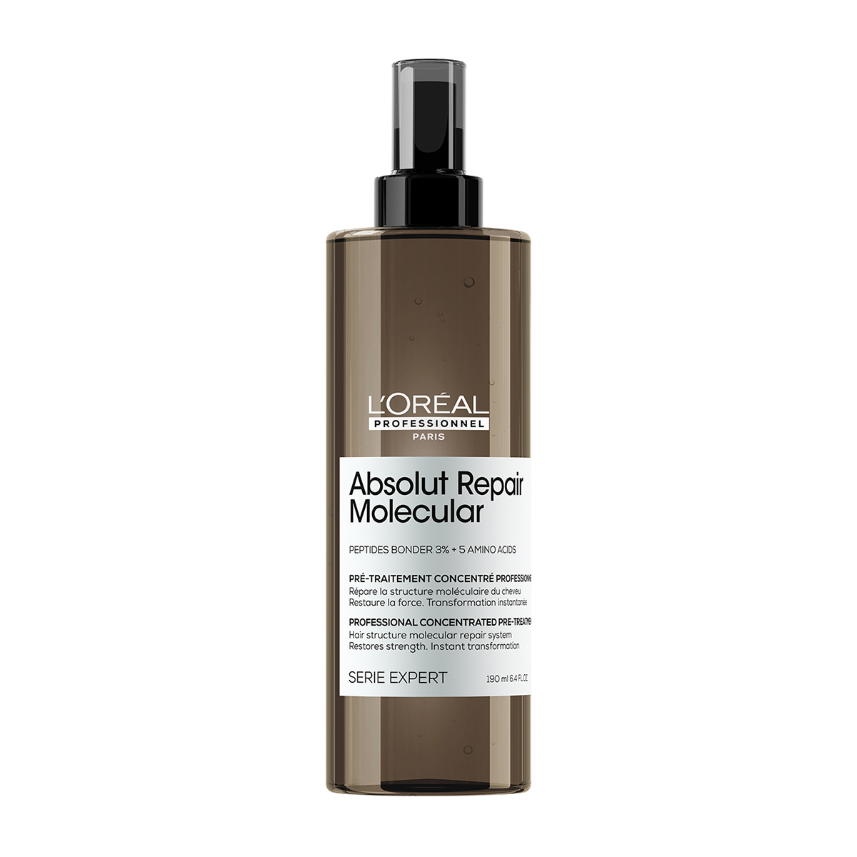 Η L’Oréal Professionnel Serie Expert Absolut Repair Molecular Pre-Treatment είναι το πρώτο βήμα του επαναστατικού συστήματος μοριακής επανόρθωσης της τρίχας. Πρόκειται για μια προ-θεραπεία χωρίς ξέβγαλμα πριν το σαμπουάν, σχεδιασμένη να ανοίγει τη δομή της τρίχας και να προετοιμάζει τα μαλλιά ώστε να απορροφήσουν αποτελεσματικά τα δραστικά επανορθωτικά συστατικά της σειράς Absolut Repair Molecular.