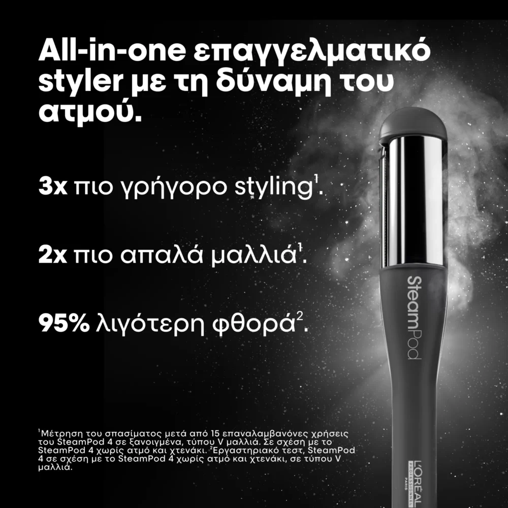 Η L’Oréal Professionnel SteamPod 4 Meteora Limited Edition είναι το απόλυτο επαγγελματικό εργαλείο styling με τεχνολογία ατμού, σχεδιασμένο για να δημιουργεί ίσιο, κυματιστό ή σγουρό look με έως και 78% λιγότερη φθορά* στα μαλλιά. Η νέα γενιά SteamPod 4 προσφέρει ακόμα μεγαλύτερη ευελιξία, ταχύτερο styling και αποτελέσματα μεγάλης διάρκειας, ενώ σέβεται την υγεία της τρίχας.