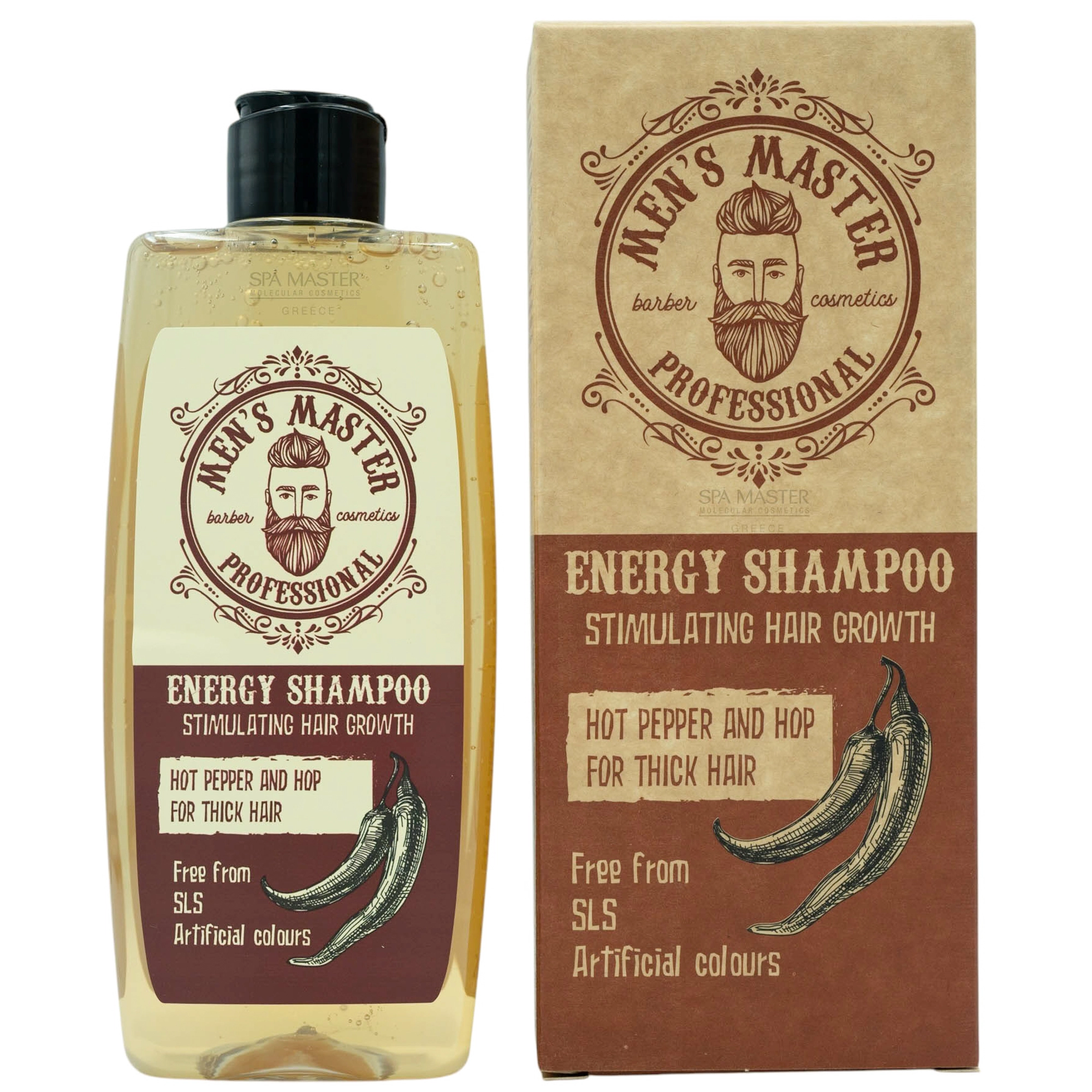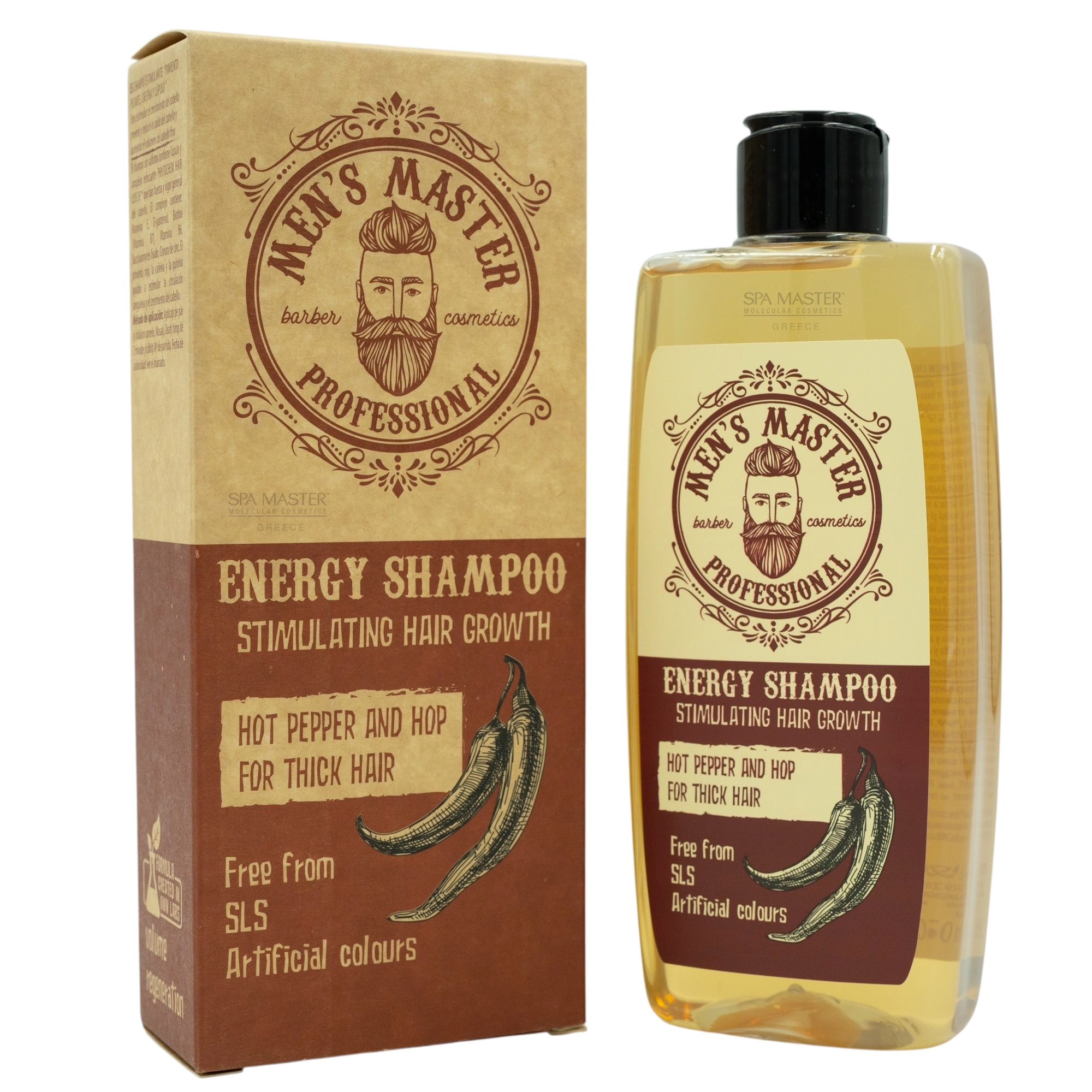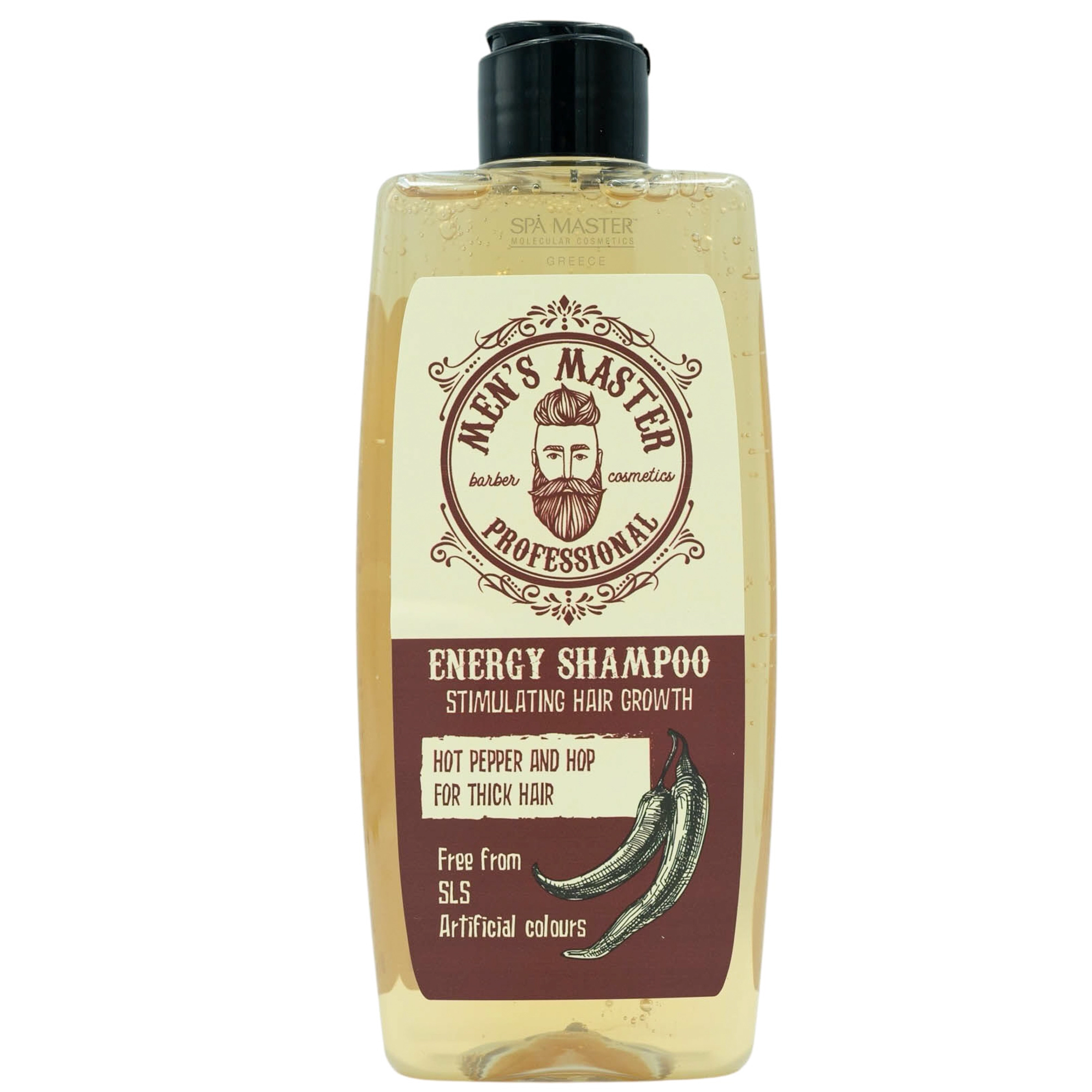 MEN’S MASTER Energy Shampoo με Καφεΐνη, Κινίνη & Πιπεριά – Ενισχύει την ανάπτυξη, μειώνει την τριχόπτωση και ενεργοποιεί το τριχωτό της κεφαλής για δυνατά, υγιή μαλλιά.