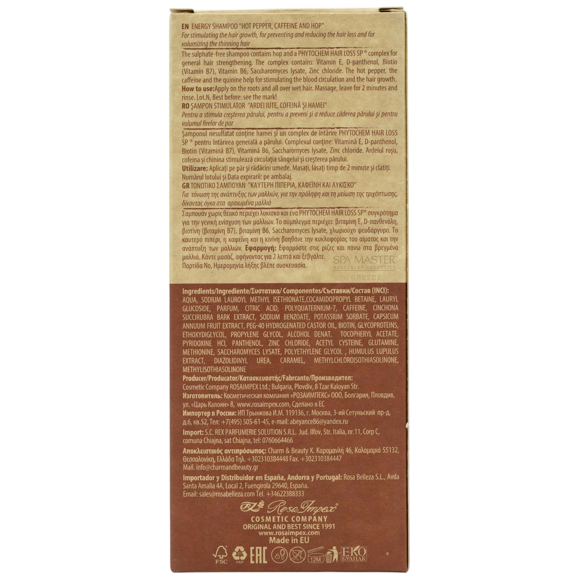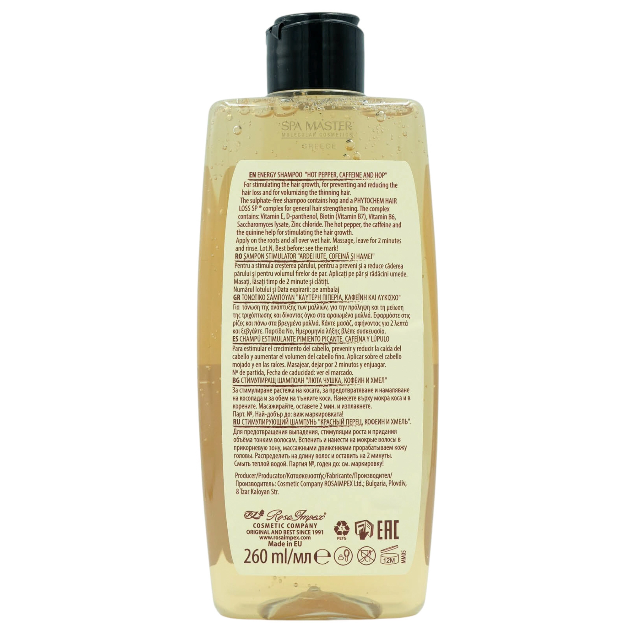 Το MEN’S MASTER Energy Shampoo είναι ένα εξειδικευμένο σαμπουάν για άνδρες, ιδανικό για την αντιμετώπιση της τριχόπτωσης και την ενίσχυση της τριχοφυΐας. Με δραστικά φυσικά συστατικά όπως καφεΐνη, κόκκινη πιπεριά, κινίνη, λυκίσκο και βιταμίνες, ενεργοποιεί τη μικροκυκλοφορία του τριχωτού και ξυπνά τους θύλακες της τρίχας, συμβάλλοντας στην ανάπτυξη υγιών, δυνατών μαλλιών.