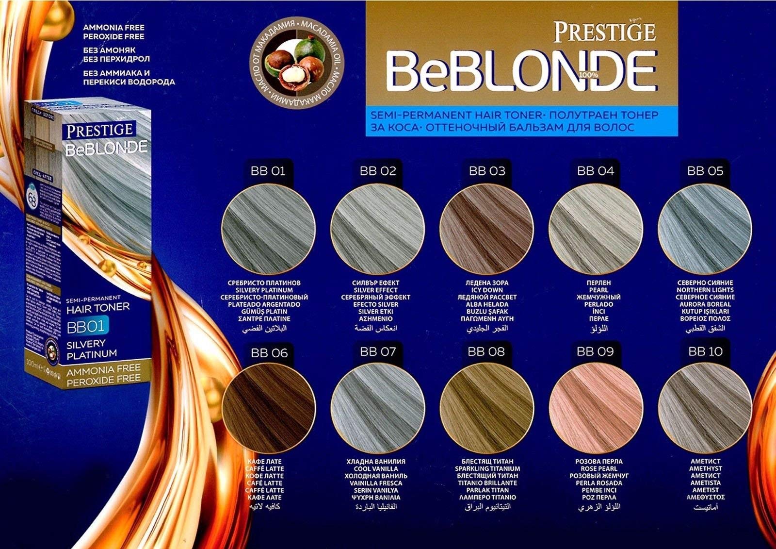 Η Prestige BeBlonde είναι μια ημιμόνιμη κρέμα ρεφλέ τελευταίας τεχνολογίας, σχεδιασμένη για να προσφέρει καθαρό, ψυχρό αποτέλεσμα στα ξανθά ή ντεκαπαρισμένα μαλλιά, χωρίς αμμωνία και χωρίς PPD. Παράλληλα, ενυδατώνει σε βάθος, χαρίζει λάμψη, και διατηρεί την τρίχα υγιή και απαλή.