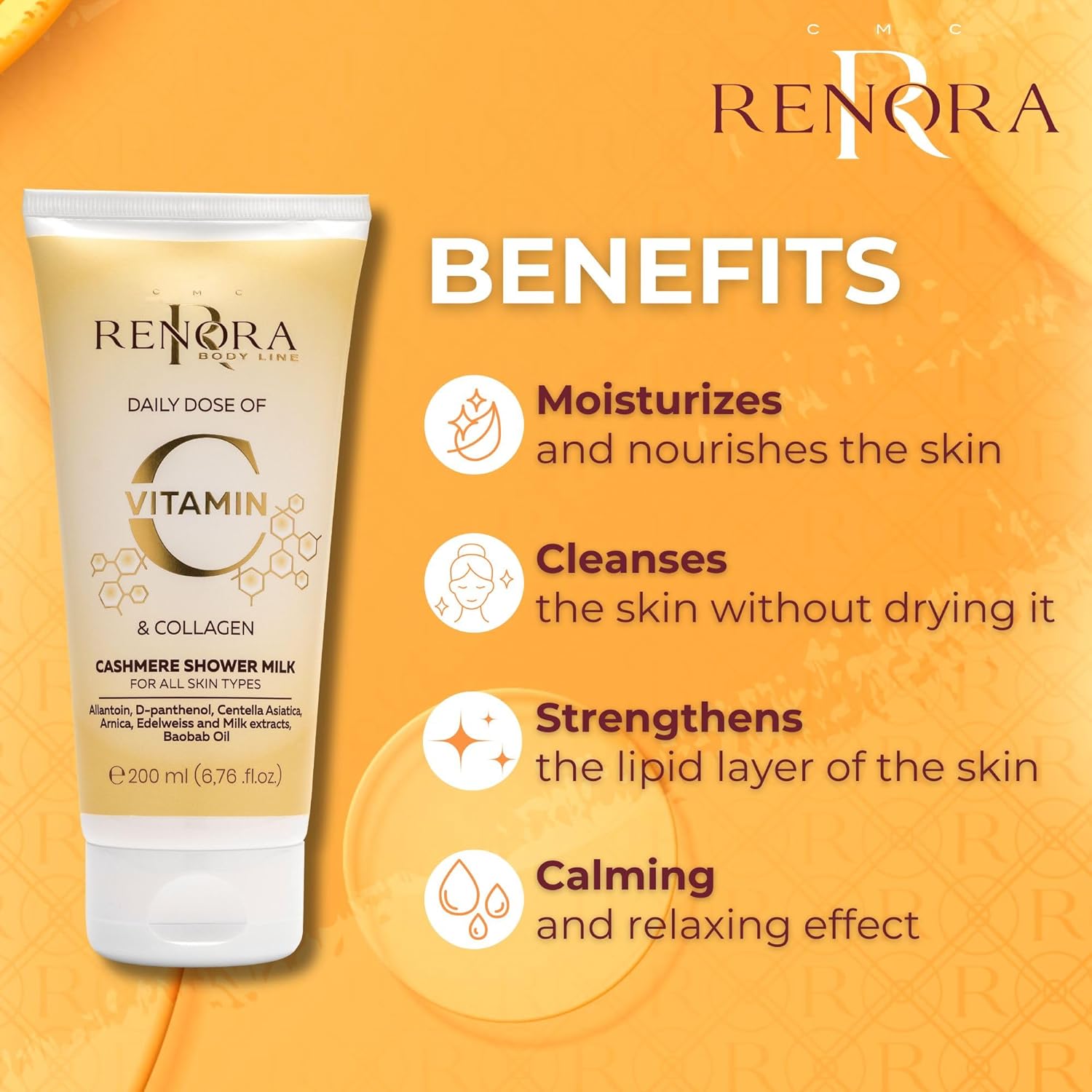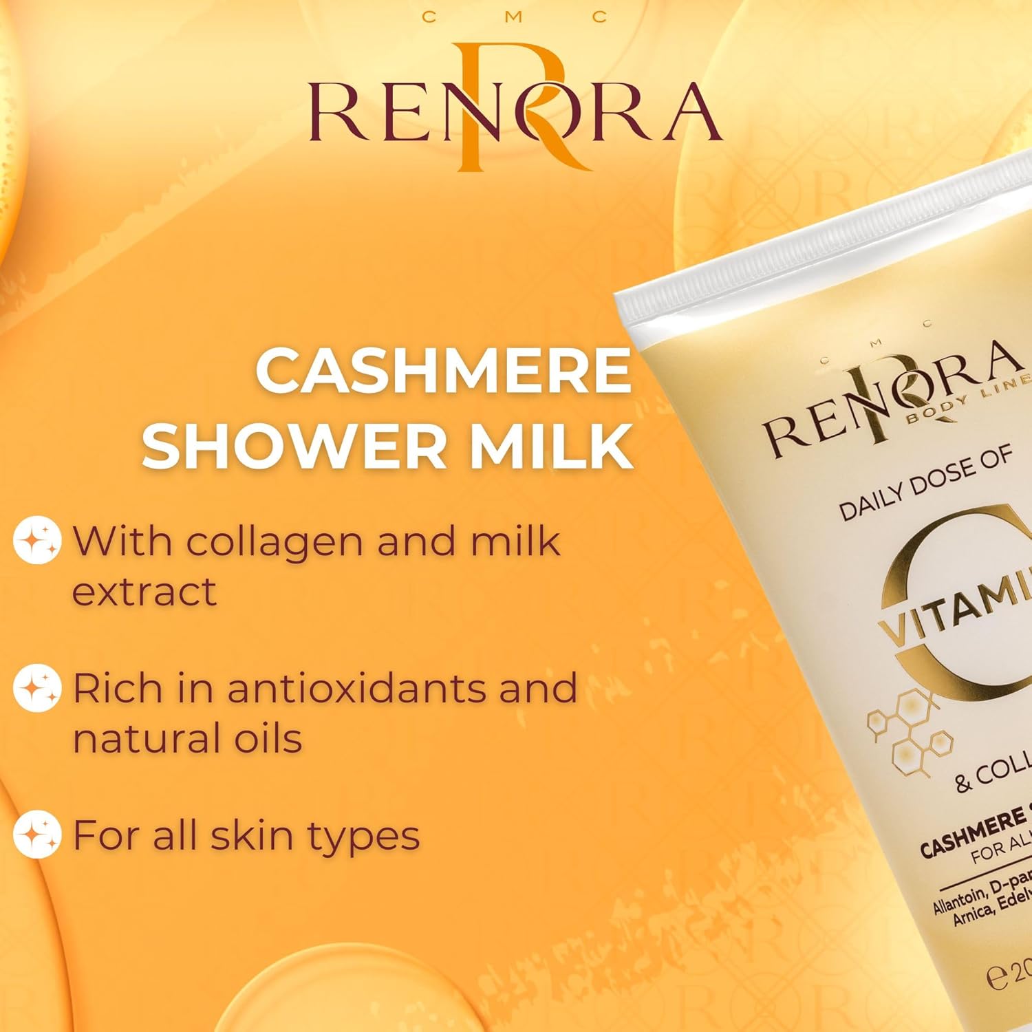 Renora Daily Dose Vitamin C & Collagen Cashmere Shower Milk 250ml – Απαλό Γαλάκτωμα Καθαρισμού για Λάμψη & Θρέψη στο Ντους