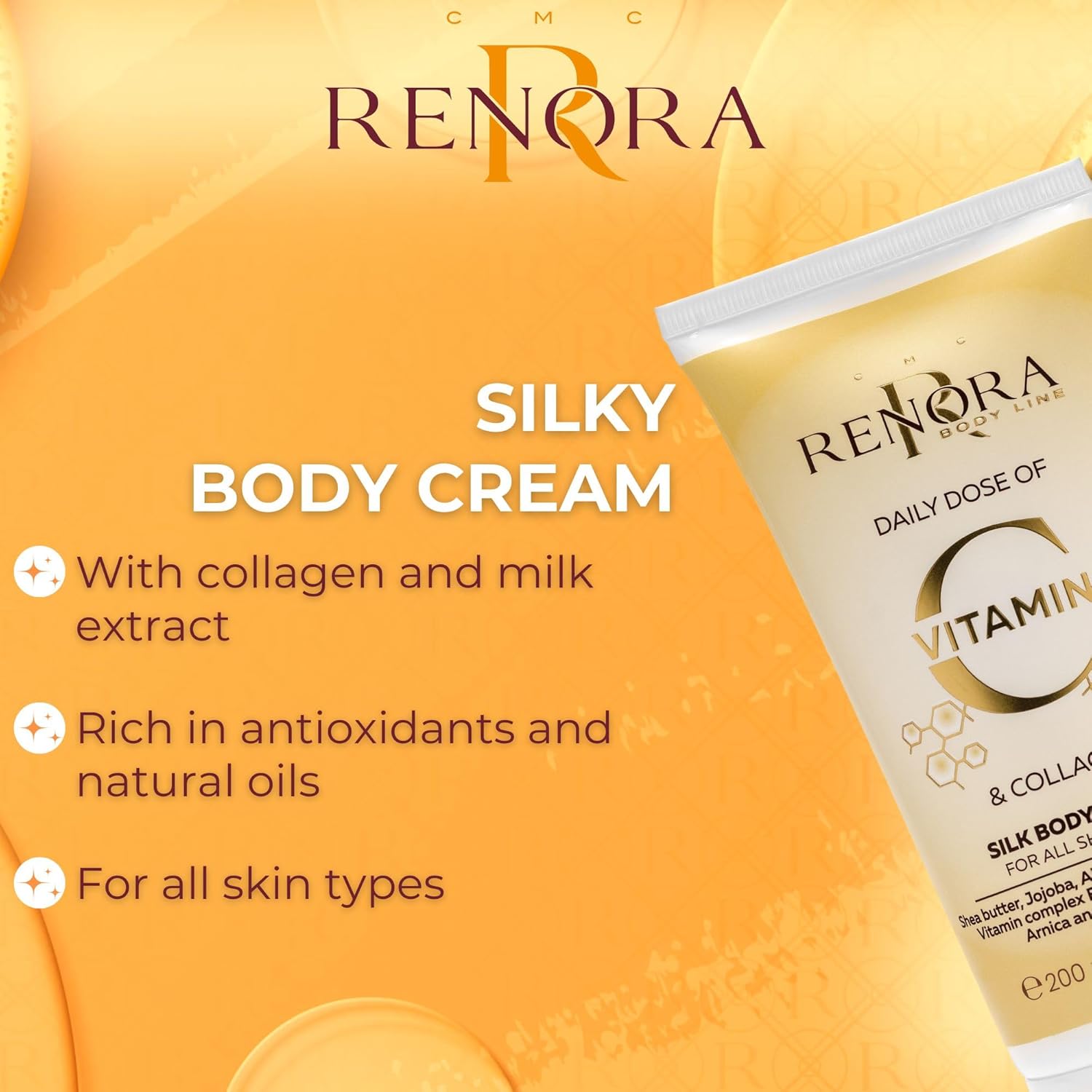 Renora Daily Dose Vitamin C & Collagen Silk Body Cream 250ml – Μεταξένια Κρέμα Σώματος για Λάμψη, Σύσφιξη & Θρέψη