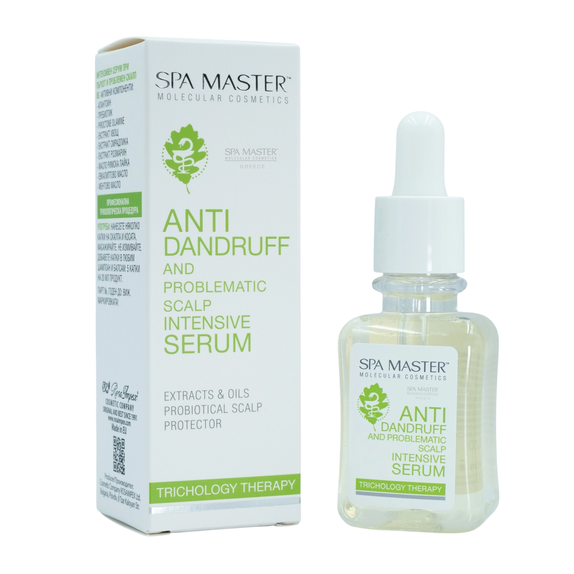 Ανακαλύψτε την απόλυτη φροντίδα για το ευαίσθητο και με τάση για πιτυρίδα τριχωτό με τον SPA MASTER Anti-Dandruff & Problematic Scalp Intensive Serum από τη σειρά Trichology Therapy. Με σύνθεση που συνδυάζει προβιοτικά, φυτικά εκχυλίσματα και αιθέρια έλαια, εξισορροπεί το μικροβίωμα, μειώνει άμεσα την πιτυρίδα και καταπραΰνει τον ερεθισμό, αφήνοντας το τριχωτό καθαρό, δροσερό και υγιές.