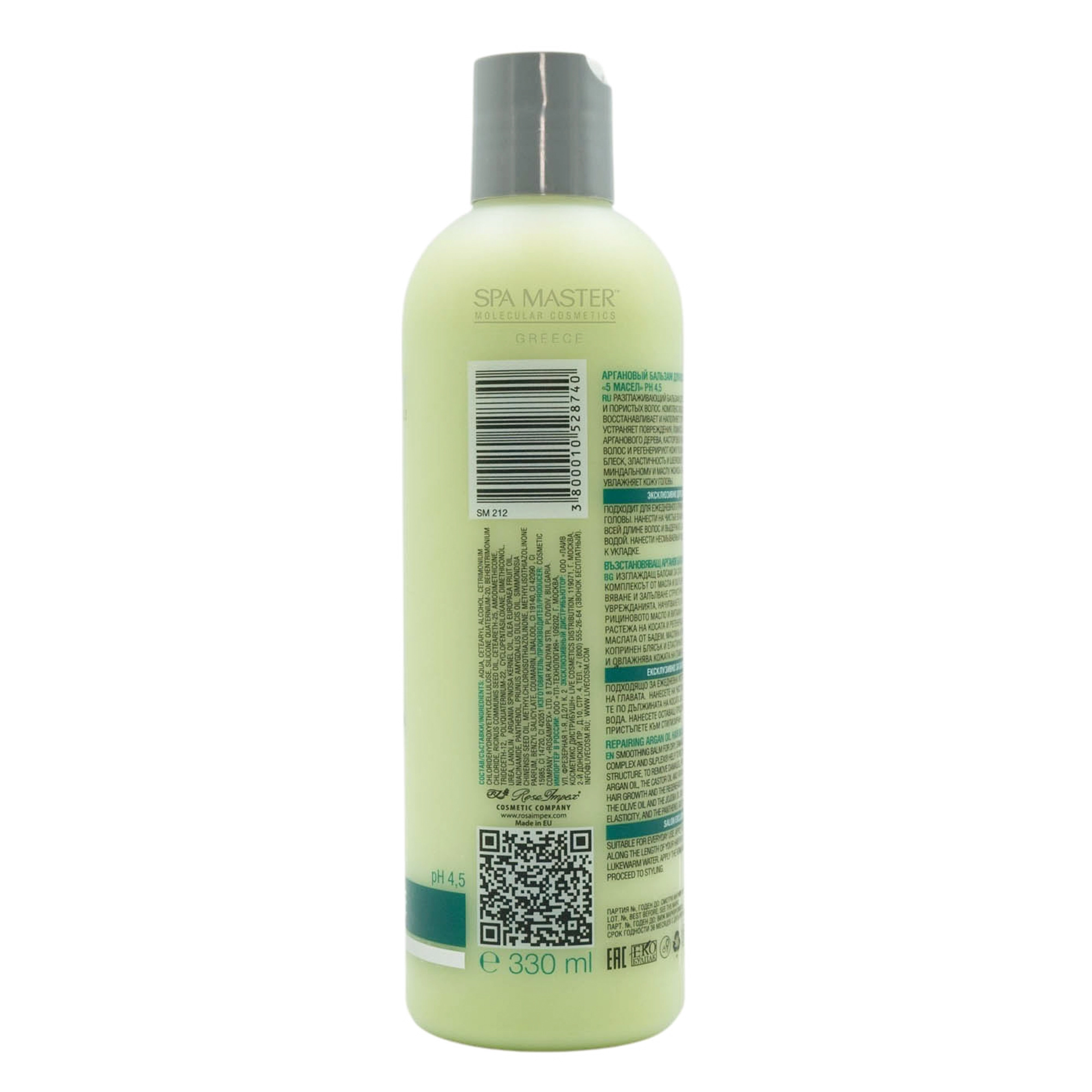 Spa Master Arganic Hair Balm 330ml – Επανορθωτικό Βάλσαμο Μαλλιών με 5 Έλαια, Panthenol & SliPlex™