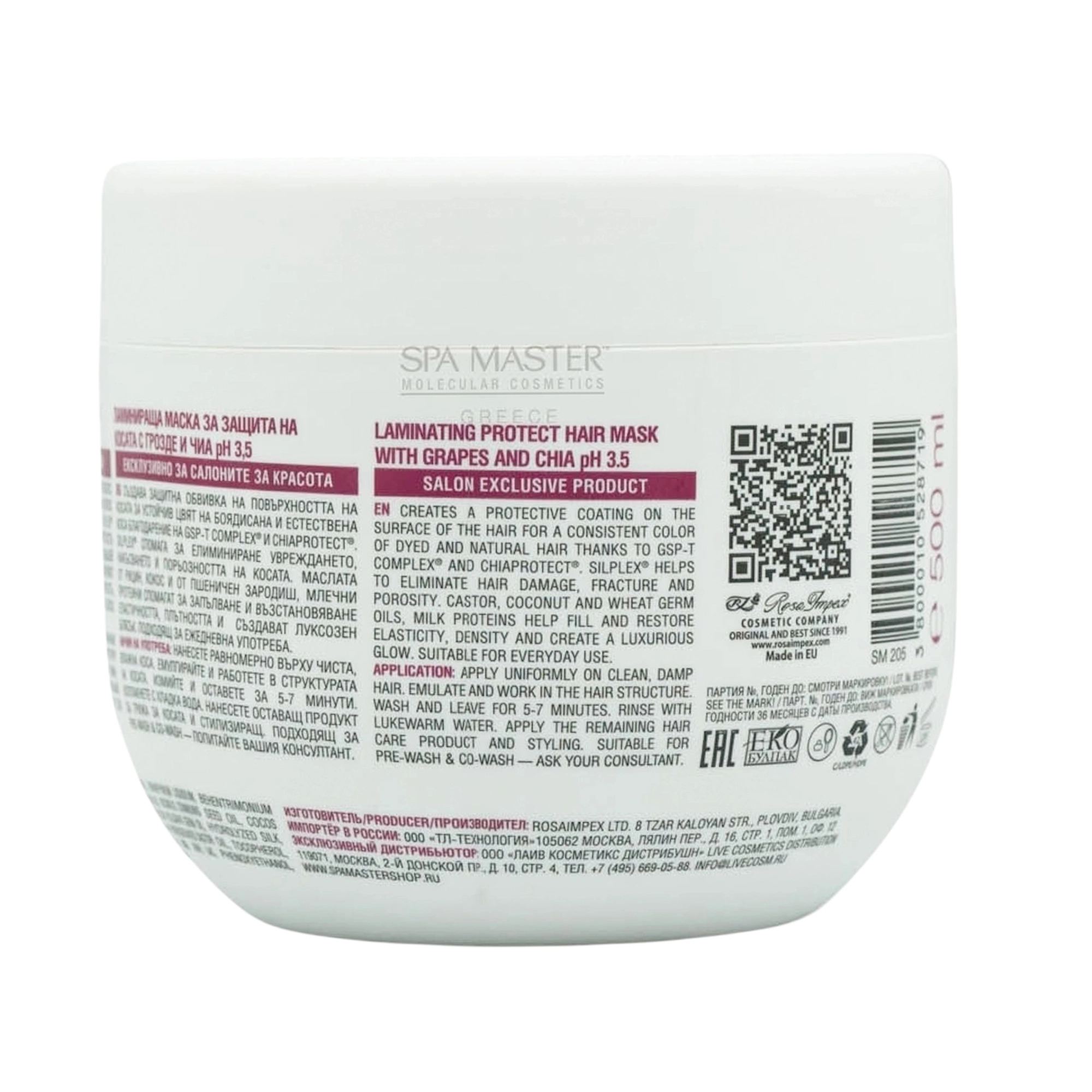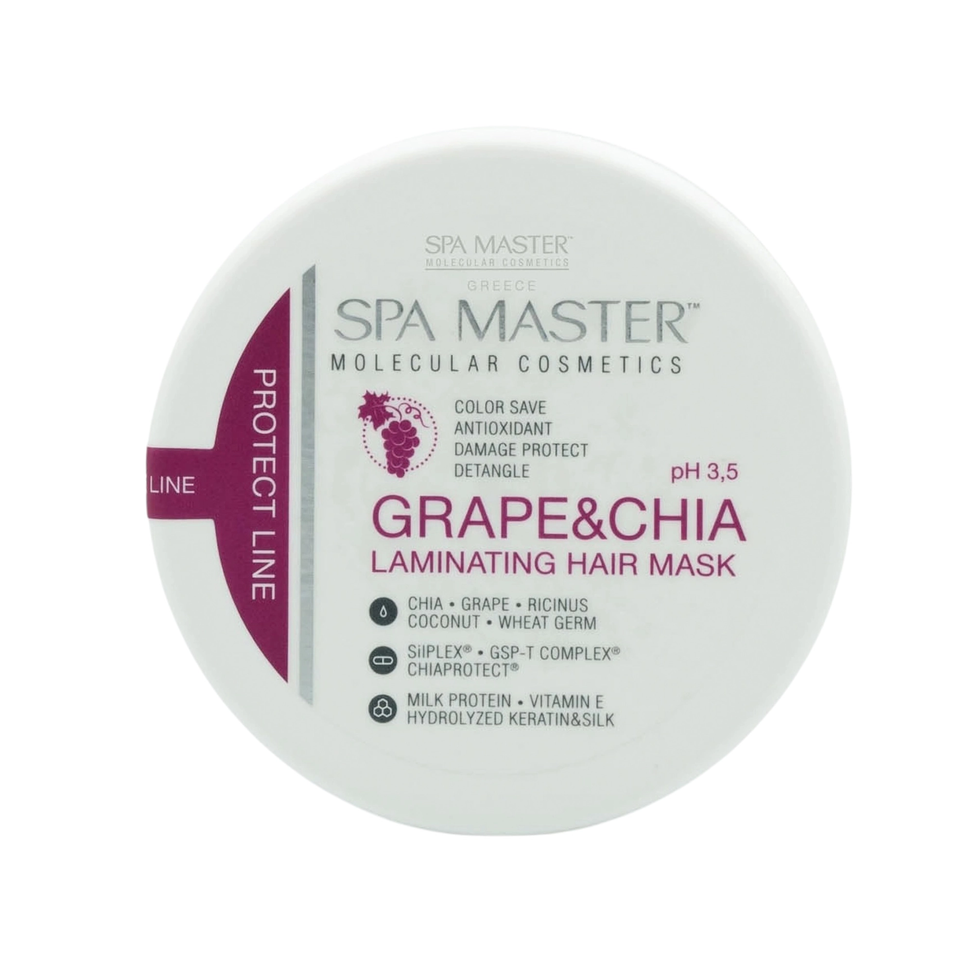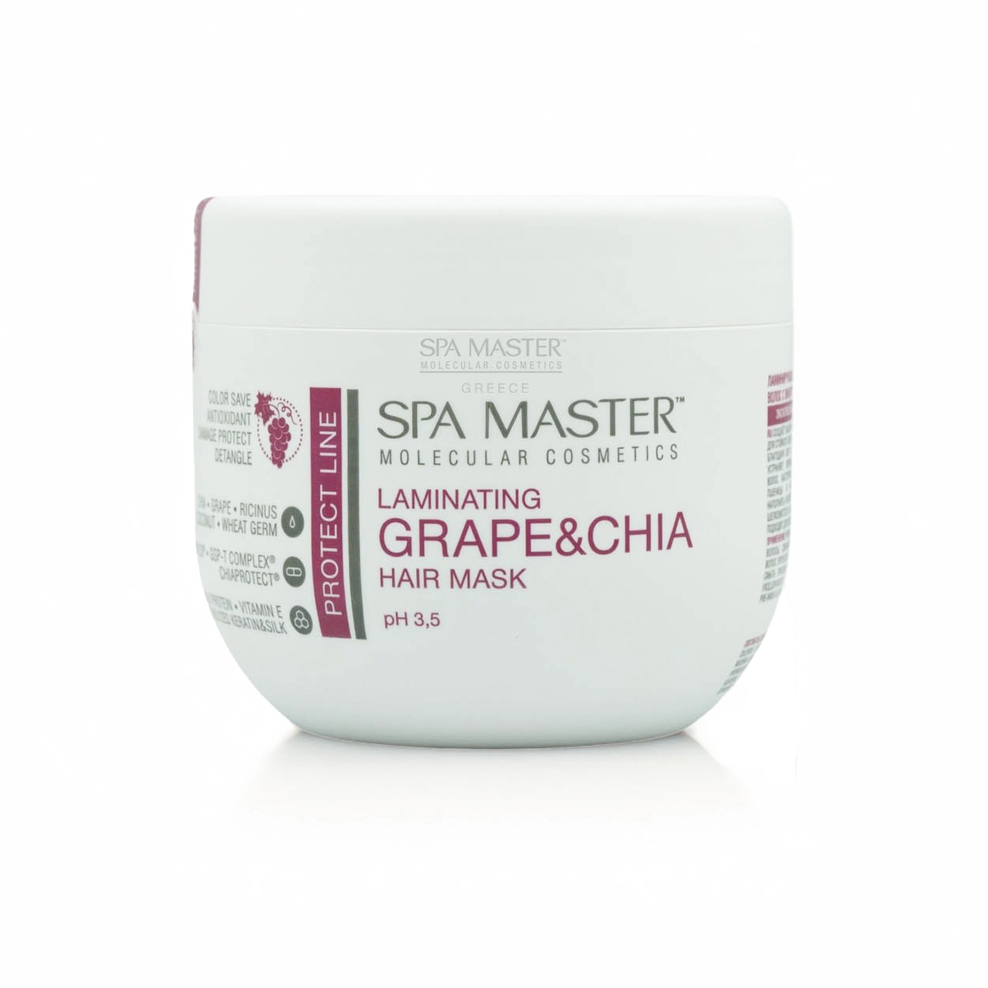 Spa Master Laminating Μάσκα Μαλλιών με Grape & Chia pH 3,5 500ml – Επαγγελματική Μάσκα Προστασίας Χρώματος & Λάμψης